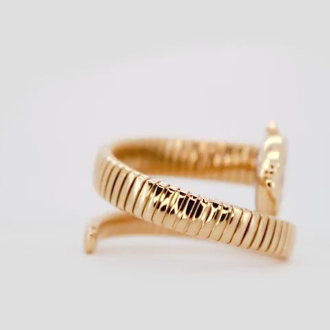 Crafted from durable IP yellow gold-plated stainless steel, the watch features a striking 22mm case, 8mm thin, meticulously adorned with 24 dazzling zircons. This intricate detailing reflects the iconic snake motif of the Signature Snake family, a hallmark of designer sophistication. The captivating silver grey dial is further embellished with 8 sparkling zircons, adding an irresistible allure to every glance.