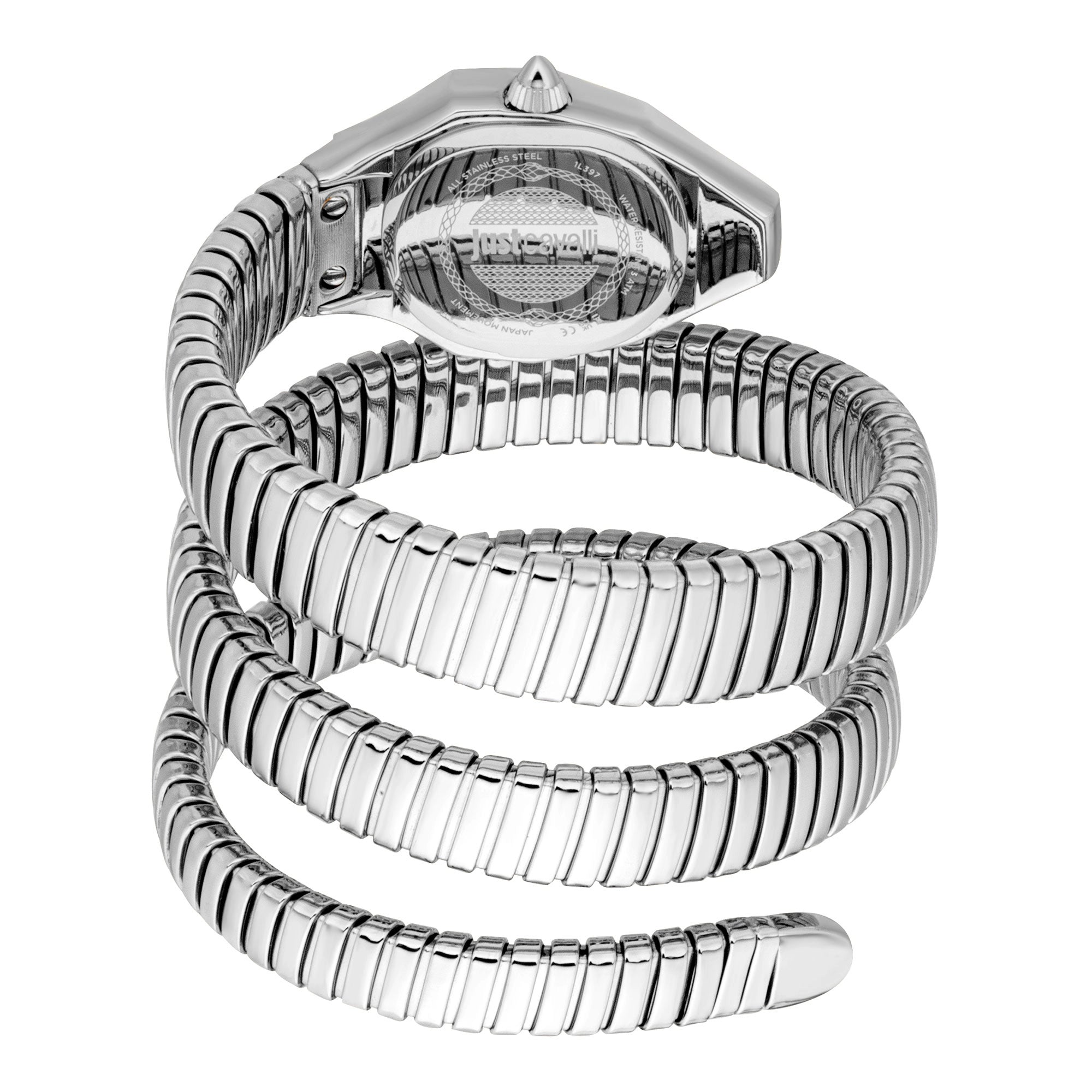 Discover the exquisite Just Cavalli Lady Snake Lunara watch (JC1L397M0015), a stunning blend of fashion and elegance designed for the modern woman. This luxurious silver grey timepiece, part of the SS2026 collection, showcases Just Cavalli's iconic Signature Snake motif, adding a unique and sophisticated touch to your wrist.