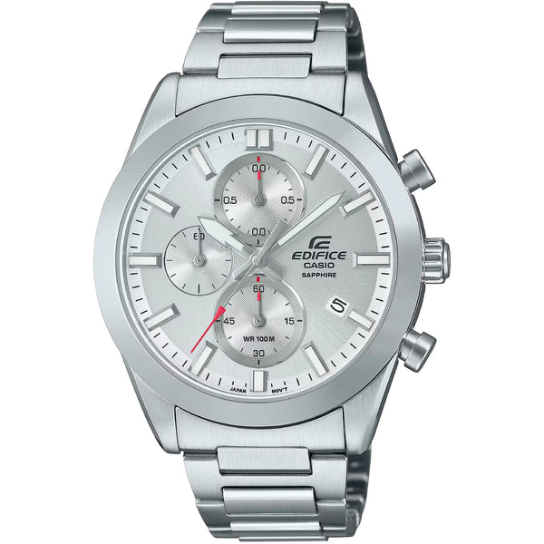 En el ámbito de la medición del tiempo, donde la precisión se encuentra con la elegancia, surge una obra maestra que encarna el espíritu de la sofisticación moderna. Elaborado con meticulosa atención al detalle, este reloj Casio Edifice es un testimonio del arte de la relojería. Su caja redonda, bañada en un elegante tono gris plateado, irradia un diseño refinado que captura la esencia del estilo contemporáneo. Con un diámetro de caja de 41 mm, logra el equilibrio perfecto entre presencia y sutileza, convirtiéndolo en un compañero ideal para el caballero exigente. El cristal de zafiro, conocido por su durabilidad y claridad, protege la intrincada pantalla del cronógrafo, asegurando que cada segundo se capture con una precisión inigualable. La correa de acero inoxidable gris plateado, asegurada con un cierre desplegable con botón pulsador y bloqueo de seguridad, ofrece tanto comodidad como seguridad, haciéndolo adecuado para cualquier ocasión. Resistente al agua hasta 100 metros, este reloj es tan versátil como elegante, listo para acompañarte desde la sala de juntas hasta la playa. La corona de tirar y empujar añade un toque de encanto clásico, mientras que la función de calendario de fecha asegura que mantengas tu agenda al día. Impulsado por un movimiento de cuarzo preciso, este reloj es una celebración tanto de la forma como de la función. La función de cronógrafo, integrada perfectamente en el diseño, añade una capa de sofisticación, permitiéndote medir el tiempo con precisión. En un mundo donde el estilo y la funcionalidad a menudo chocan, este reloj Casio Edifice se erige como un faro de armonía, un verdadero reflejo del estilo de vida del hombre moderno.