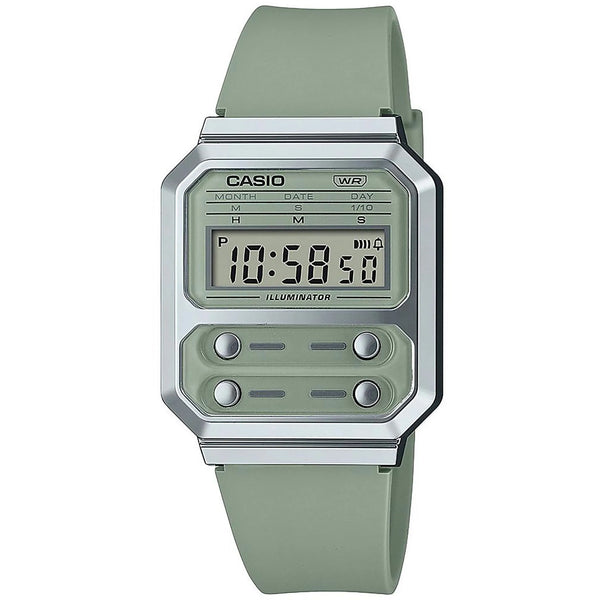 En un mundo donde el tiempo es tanto un lujo como una necesidad, el reloj CASIO Retro Vintage emerge como un faro de estilo y funcionalidad atemporales. Elaborado con el espíritu de los años 80, este reloj unisex captura la esencia de la elegancia casual con su elegante caja rectangular, terminada en un sofisticado gris plateado. El diseño refinado del reloj se complementa con una vibrante correa de goma verde, que añade un toque de modernidad a sus raíces vintage. La esfera verde, que combina armoniosamente con la correa, ofrece un toque de color que refleja el espíritu audaz y aventurero de su portador. Equipado con una pantalla digital, este reloj garantiza precisión con su movimiento de cuarzo, mientras que el calendario de día, fecha y mes te mantiene organizado sin esfuerzo. La corona de tirar y empujar y el cierre de hebilla de lengüeta proporcionan facilidad de uso, convirtiéndolo en una opción práctica para el uso diario. Resistente al agua y con función de alarma y luz, este reloj es tan versátil como elegante, listo para acompañarte en cualquier aventura. Ya sea que estés navegando por la jungla urbana o disfrutando de un día de ocio, el reloj CASIO Retro Vintage es tu compañero perfecto, combinando nostalgia con encanto contemporáneo en una danza perfecta de tiempo y estilo.