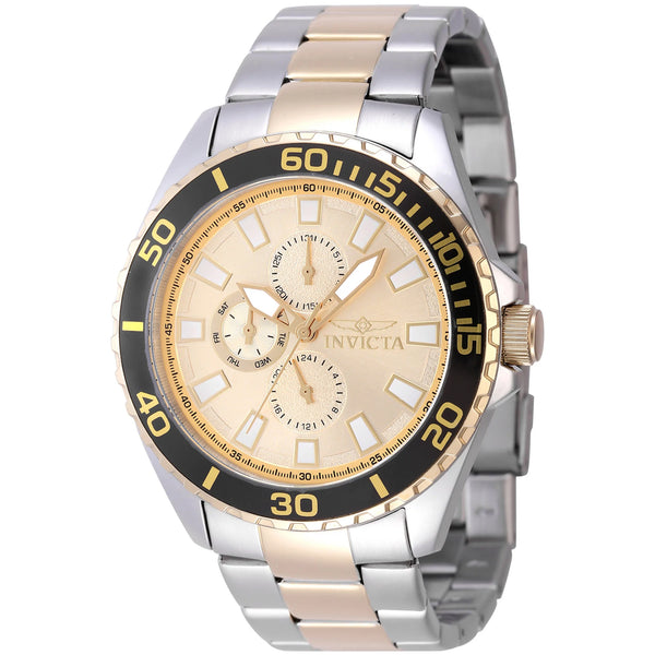En el mundo de los relojes, donde la elegancia se encuentra con la funcionalidad, el Invicta Pro Diver emerge como un faro de estilo y precisión. Elaborado con un diseño refinado, este reloj es un testimonio del arte de la relojería, combinando a la perfección la sofisticación casual con la practicidad diaria. La caja redonda, bañada en un elegante gris plateado, llama la atención con su impresionante diámetro de 46 mm, haciendo una declaración audaz en cualquier muñeca. Su correa de acero inoxidable en oro amarillo, asegurada con un cierre desplegable plegable y un seguro de seguridad, añade un toque de opulencia, garantizando tanto comodidad como seguridad. La esfera, de un radiante oro amarillo, captura la esencia del lujo, mientras que la pantalla multifunción, impulsada por un preciso movimiento de cuarzo, ofrece funciones de día y fecha, asegurando que te mantengas en horario con estilo. El cristal Hardlex proporciona una vista clara de la esfera, mientras que la corona de tirar y empujar permite ajustes fáciles. Con una resistencia al agua de hasta 50 metros, este reloj es tan versátil como elegante, listo para acompañarte desde la sala de juntas hasta la playa. El Invicta Pro Diver no es solo un reloj, es una declaración de gusto refinado y elegancia atemporal, perfecto para el hombre moderno que valora tanto la forma como la función.