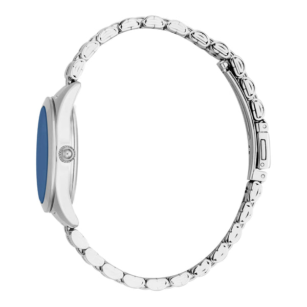 En el ámbito de la elegancia y la sofisticación, el reloj Just Cavalli Luna emerge como un faro de estilo y gracia. Elaborado en el corazón de la moda, este exquisito reloj de la colección Just Cavalli Glam Chic es un testimonio del compromiso de la marca con el lujo y la innovación. Diseñado para la mujer moderna que irradia confianza y encanto, el reloj Luna cautiva con su caja redonda de color gris plateado que complementa perfectamente su elegante correa de acero inoxidable. El cierre desplegable con botón pulsador garantiza un ajuste seguro y cómodo, convirtiéndolo en un compañero ideal para cualquier ocasión. La esfera azul noche, que recuerda a un cielo estrellado, añade un toque de misterio y atractivo, mientras que el movimiento de cuarzo y la visualización de tres agujas prometen precisión y fiabilidad. Resistente al agua y adornado con un cristal mineral, este reloj es tan práctico como hermoso. El diseño refinado y la atención al detalle lo convierten en un accesorio imprescindible para quienes aprecian las cosas más finas de la vida. Con su armoniosa combinación de moda y función, el reloj Just Cavalli Luna no es solo un reloj, es una declaración de estilo y sofisticación que trasciende las tendencias y el tiempo.