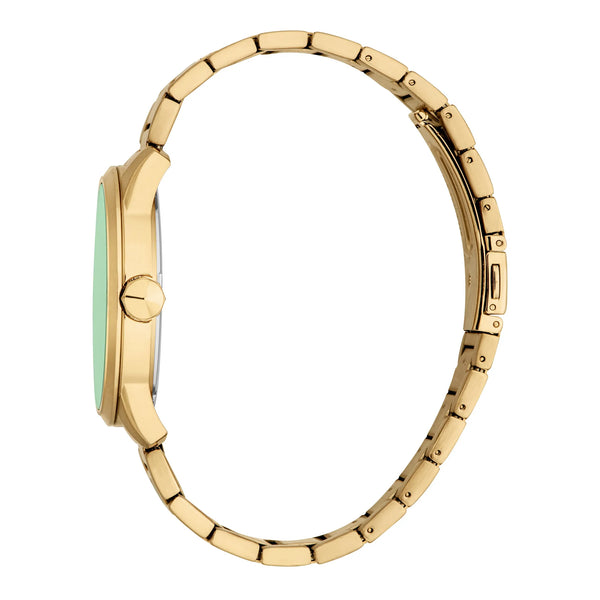 Reloj elaborado con un diseño refinado para el hombre moderno, esta elegante pieza pesa 116 g y combina una caja redonda de acero con oro amarillo con una esfera verde botella para un contraste llamativo pero refinado. Resistente al agua hasta 100 metros, soporta el uso diario y actividades acuáticas con confianza. El cristal es mineral, combinado con una corona de tipo pull & push para un ajuste sencillo. La correa de acero inoxidable ofrece durabilidad y una estética pulida, asegurada por un cierre desplegable con botón pulsador para un cierre cómodo y fiable. Masculino en presencia y refinado en detalle, este reloj equilibra forma y función con un atractivo atemporal, convirtiéndolo en un accesorio ideal tanto para entornos profesionales como de ocio.