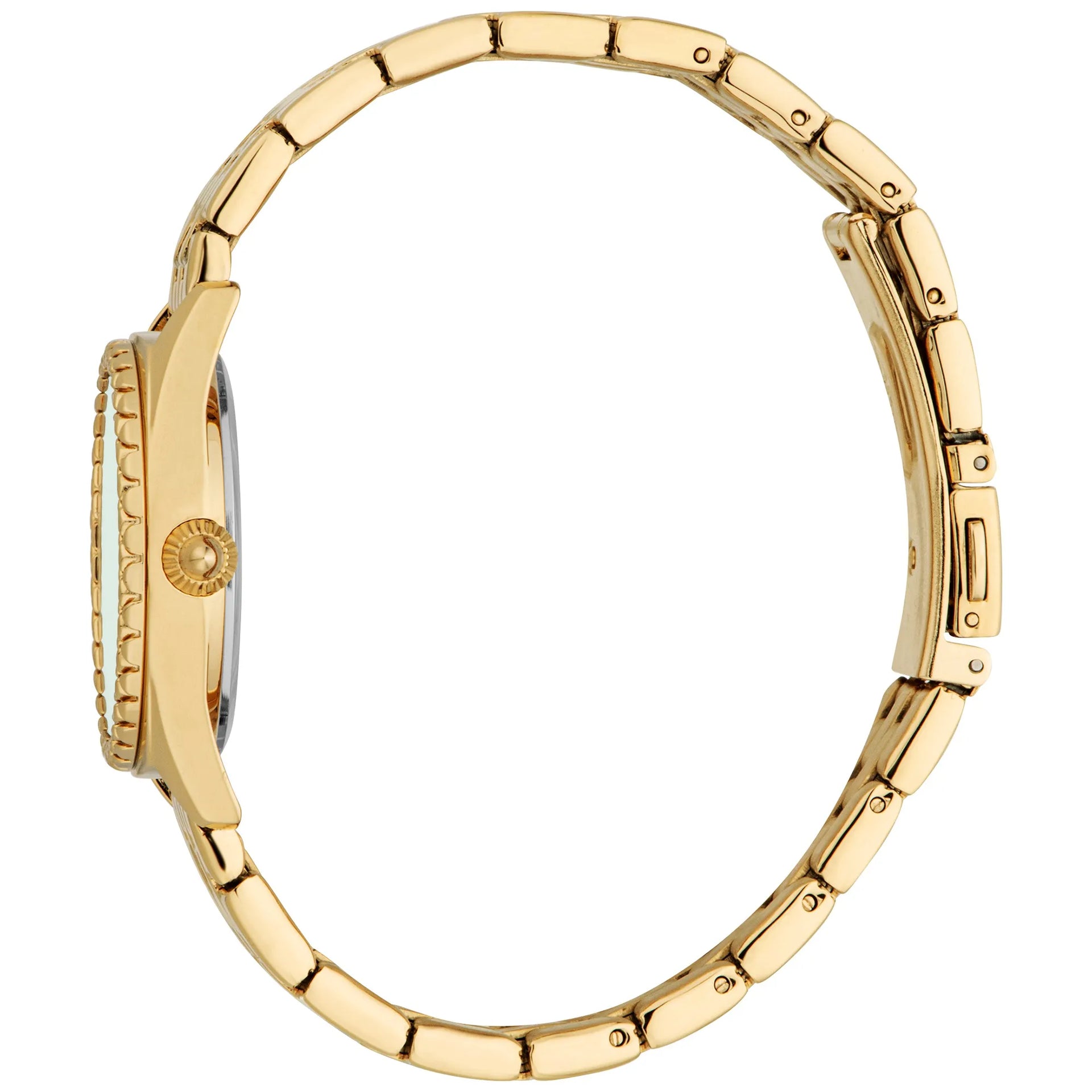 El Just Cavalli Indomitable Animalier en oro amarillo es una celebración del diseño audaz. Su esfera verde botella y la correa de acero inoxidable crean un contraste llamativo, mientras que el cierre desplegable de mariposa garantiza un ajuste seguro. Este reloj es un verdadero icono de la moda.
