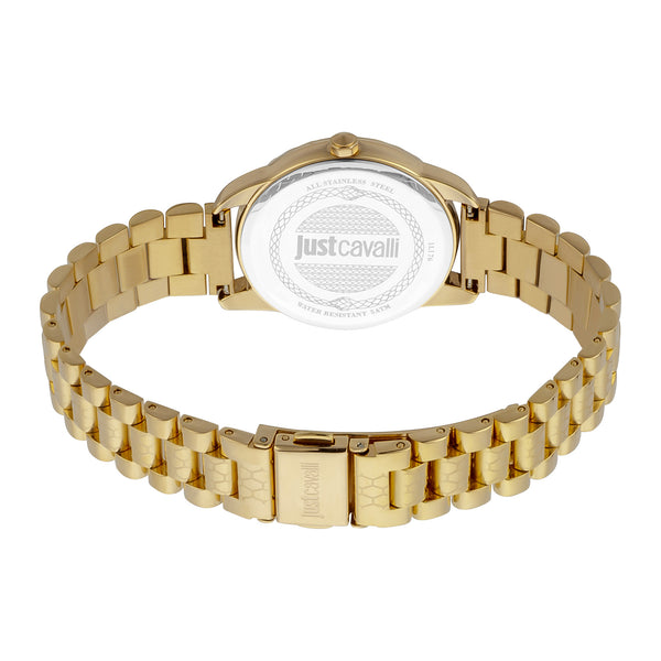 En el ámbito de la elegancia y la sofisticación, el Just Cavalli Watch emerge como un faro de estilo y gracia. Elaborado en el corazón de la moda, este exquisito reloj es un testimonio del compromiso de la marca con el lujo y el diseño. La caja redonda, bañada en un lustroso tono de oro amarillo, captura la esencia de la opulencia, mientras que su diámetro de 34 mm asegura un ajuste perfecto para la mujer moderna que valora tanto la forma como la función. Con una resistencia al agua de hasta 50 metros, este reloj es tan práctico como hermoso, listo para acompañarte en las aventuras de la vida. La esfera de cristal mineral ofrece una vista clara de la carátula color champán, donde tres elegantes manecillas se deslizan sin esfuerzo, impulsadas por un preciso movimiento de cuarzo. La correa de acero inoxidable, también en un oro amarillo a juego, se envuelve alrededor de la muñeca con un cierre desplegable tipo mariposa, asegurando tanto seguridad como facilidad de uso. Este Just Cavalli Watch es más que un accesorio, es una declaración de pensamiento vanguardista en moda, una pieza que combina sin esfuerzo la elegancia atemporal con un estilo contemporáneo. Ya sea que asistas a una gala o disfrutes de un día casual, este reloj es el compañero perfecto, encarnando el espíritu del lujo y el arte de vivir bellamente.