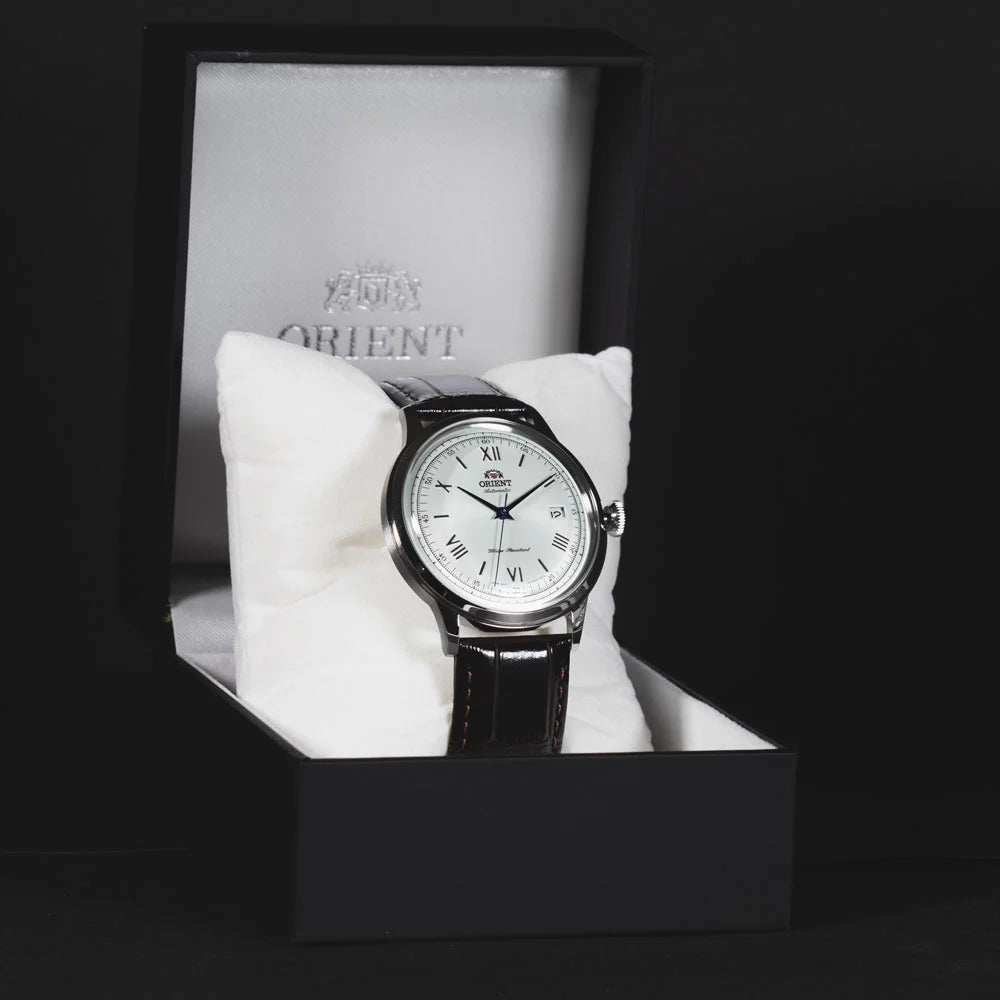 En el ámbito de la elegancia atemporal, el ORIENT AC00 Bambino V2 emerge como un faro de sofisticación clásica. Elaborado con meticulosa atención al detalle, este reloj ORIENT Classic es un testimonio del arte de la relojería. Su caja redonda, bañada en un refinado tono gris plateado, encierra una esfera gris claro que irradia un encanto discreto. La armoniosa combinación de colores se complementa con una correa de cuero marrón, asegurada con una hebilla tradicional de ardillón, que ofrece tanto comodidad como estilo. En el corazón de esta obra maestra se encuentra el movimiento mecánico, impulsado por el calibre F6724 con 22 rubíes, que garantiza precisión con una exactitud diaria de +25/-15. La capacidad del reloj para ser tanto de cuerda manual como automático habla de su versatilidad, atendiendo a las necesidades del caballero moderno. Resistente al agua y protegido por un cristal mineral, promete durabilidad sin comprometer la elegancia. La corona de tirar y empujar y el calendario de fecha añaden un toque funcional a su diseño clásico. Este reloj ORIENT no es solo un instrumento para medir el tiempo, es una declaración de gusto refinado, perfecto para quienes aprecian las sutiles nuances del estilo clásico.