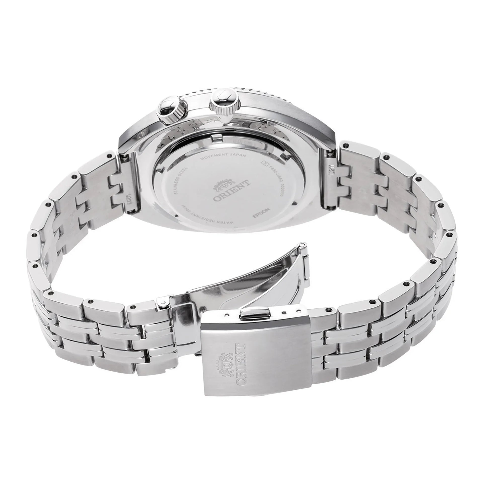 Sumérgete en la aventura con el reloj deportivo ORIENT Neo Classic, diseñado para el explorador moderno. Su esfera negra y caja redonda gris plateada se complementan con una correa de acero inoxidable, ofreciendo un aspecto audaz pero refinado. Con una resistencia al agua para buceadores de 200 metros y un cierre desplegable plegable, este reloj está hecho para quienes buscan tanto estilo como rendimiento.