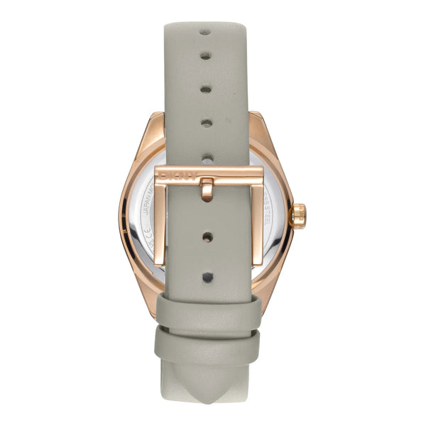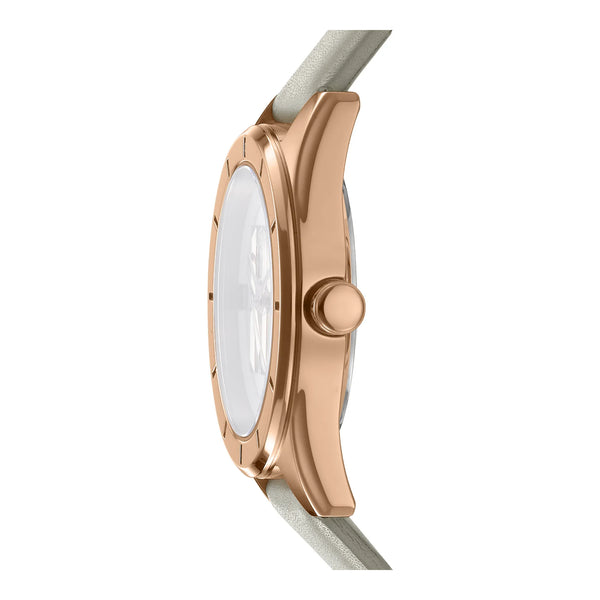 En el bullicioso corazón de la ciudad de Nueva York, donde la moda se encuentra con la función, surge un reloj que encarna el espíritu de la elegancia moderna: el DKNY Chambers Midi. Elaborado con precisión y un ojo atento para el estilo, este reloj es un testimonio de la mujer sofisticada que valora tanto la forma como la función. Su caja redonda, bañada en un lujoso tono oro rosa, captura la luz con cada movimiento, creando un brillo sutil pero cautivador. Midiendo un delicado diámetro de 34 mm, se posa con gracia en la muñeca, ofreciendo un diseño refinado que es tanto atemporal como contemporáneo. La esfera de cristal mineral protege una carátula gris plateada, donde tres manecillas bailan con gracia sobre su superficie, impulsadas por el confiable latido de un movimiento de cuarzo. La corona de tirar y empujar ofrece facilidad de ajuste, asegurando que el tiempo siempre esté a tu favor. Una correa de cuero gris plateado, suave al tacto pero resistente, se envuelve cómodamente alrededor de la muñeca, asegurada por una clásica hebilla de ardillón. Esta armoniosa mezcla de colores y materiales crea un accesorio versátil, perfecto para cualquier ocasión. Con una resistencia al agua de hasta 50 metros, promete durabilidad sin comprometer el estilo. El DKNY Chambers Midi es más que un reloj, es una declaración de pensamiento vanguardista en moda, una pieza que susurra sofisticación y atrae la atención de la manera más discreta.