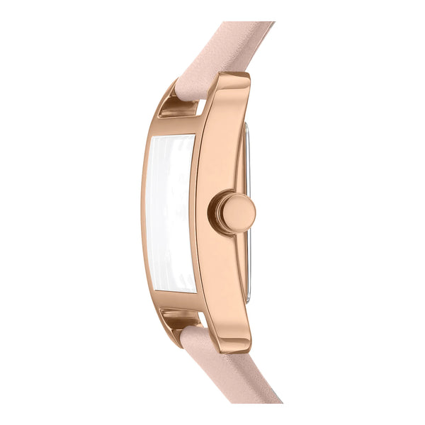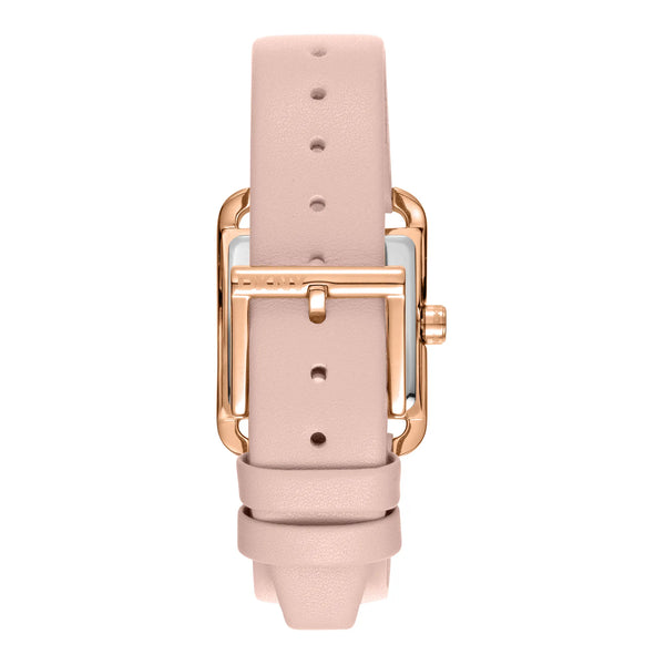 El DKNY City Midi en oro rosa es una oda romántica a la feminidad moderna. Su caja rectangular y esfera gris plateada se combinan maravillosamente con una correa de cuero rosa, creando un aspecto suave y elegante. Este reloj es una expresión perfecta de gracia y estilo.