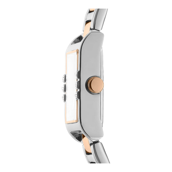 El DKNY Westside Glitz encanta con su esfera azul noche, situada dentro de una elegante caja gris plateada. La correa de acero inoxidable, con un cierre desplegable de mariposa, garantiza un ajuste seguro y con estilo. Este reloj es una mezcla perfecta de elegancia y modernidad.