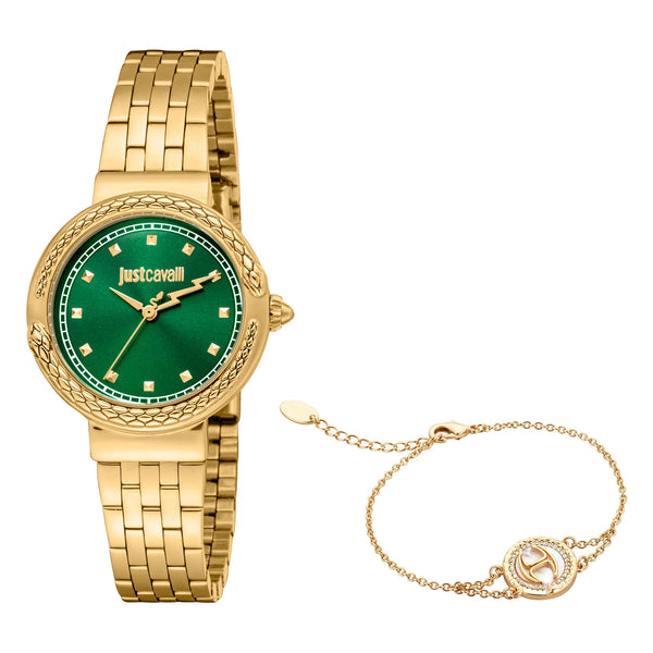 En el ámbito de la moda, donde la elegancia se encuentra con la audacia, surge un reloj que encarna el espíritu de la sofisticación atrevida—el Just Cavalli JC1L311 Brave Snake. Elaborado en el corazón de la tradición relojera suiza, este exquisito reloj es un testimonio del atractivo intrépido de la mujer moderna. Su caja redonda, bañada en el opulento resplandor del oro amarillo, captura la mirada con un diámetro de 30 mm, ofreciendo un equilibrio perfecto entre sutileza y declaración. El cristal mineral protege una esfera de verde botella profundo, un tono que susurra misterio y profundidad, invitando a quien lo lleva a explorar los territorios inexplorados del estilo. La correa de acero inoxidable, también en resplandeciente oro amarillo, envuelve la muñeca con un sentido de lujo refinado, asegurada por un cierre desplegable de mariposa con botón pulsador para facilidad y elegancia. El movimiento de cuarzo garantiza precisión, mientras que la visualización de 3 agujas danza con gracia a lo largo de la esfera, marcando cada momento con un toque de elegancia. Resistente al agua, este reloj no es solo un accesorio sino un compañero para las aventuras de la vida, listo para enfrentar los elementos con aplomo. La corona de tirar y empujar añade un toque de practicidad, fusionando sin esfuerzo funcionalidad con moda. Este reloj Just Cavalli es más que un guardatiempo, es una declaración de carácter, una celebración del espíritu audaz que define a quien lo lleva. Con su diseño atrevido y artesanía impecable, se erige como un símbolo de la elegancia audaz que es el sello distintivo de la marca Just Cavalli.