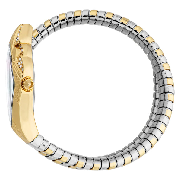 En el ámbito de los relojes, donde la elegancia se encuentra con la audacia, surge una creación que desafía lo ordinario. Elaborado en el corazón de la precisión suiza, este Just Cavalli Watch de la colección Signature Snake encarna un espíritu feroz y un carácter innegable. La caja ovalada, bañada en un lujoso tono de oro amarillo, captura la esencia de la sofisticación audaz, mientras que su diseño refinado habla de la mujer moderna que abraza la moda con confianza. La correa de acero inoxidable, también en un oro amarillo a juego, se envuelve alrededor de la muñeca como una declaración de poder y gracia. Su esfera blanca antigua, un lienzo de atractivo atemporal, está adornada con dos elegantes manecillas que se deslizan sin esfuerzo, impulsadas por la precisión del movimiento de cuarzo. Resistente al agua y protegida por un cristal mineral, este reloj es tan resistente como hermoso. La corona de tirar y empujar añade un toque de practicidad a su forma exquisita. Con un diámetro de caja de 22 mm, se asienta delicada pero prominentemente, un testimonio del estilo audaz de quien lo lleva. Este Just Cavalli Watch no es solo un accesorio, es una declaración de individualidad, una pieza que resuena con quienes se atreven a destacar.