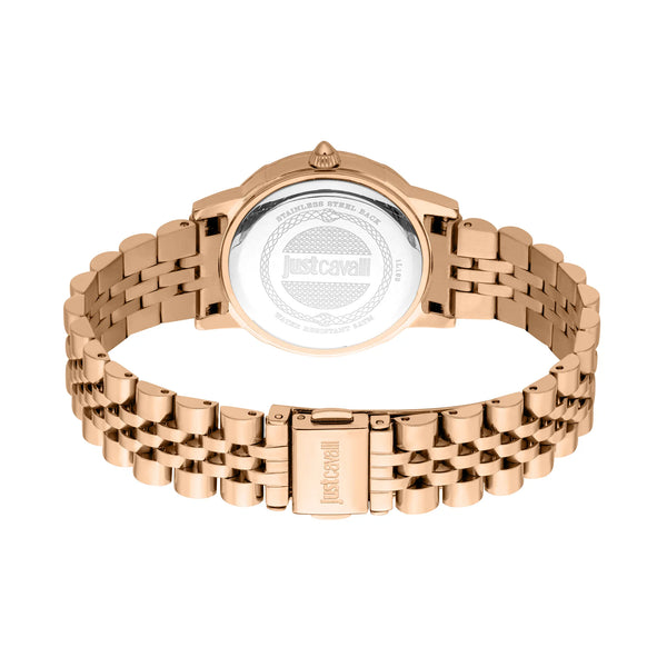 En el reino de la elegancia atemporal, donde la moda se encuentra con la función, surge una obra maestra que captura la esencia de la sofisticación: este Just Cavalli Watch. Elaborado en el corazón del estilo, encarna el espíritu de la mujer moderna que abraza tanto la gracia como la audacia. La caja redonda, bañada en un lujoso tono oro rosa, irradia una calidez que complementa la delicada muñeca que adorna. Con un diámetro de 32 mm, logra el equilibrio perfecto entre sutileza y declaración, convirtiéndolo en un compañero ideal para cualquier ocasión. La correa de acero inoxidable, también en oro rosa, envuelve la muñeca con un sentido de diseño refinado, asegurada por un cierre desplegable tipo mariposa con botón pulsador para facilidad y elegancia. La esfera blanca antigua, que recuerda a la belleza clásica, es un lienzo donde el tiempo se pinta con precisión mediante tres manecillas, impulsadas por un movimiento de cuarzo confiable. Un calendario de fecha añade un toque de practicidad, asegurando que quien lo lleva siempre esté en sintonía con el ritmo de la vida. Resistente al agua y protegido por un cristal mineral, este reloj es tan resistente como hermoso. La corona de tirar y empujar ofrece una interacción fluida, permitiendo al usuario ajustar la hora con gracia. Este Just Cavalli Watch no es solo un accesorio, es una declaración de estilo, un testimonio del atractivo de la colección Just Cavalli Glam Chic, y una celebración de la mujer que lo lleva con confianza y aplomo.