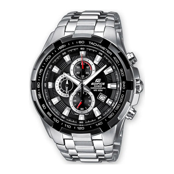 En el ámbito de la medición del tiempo, donde la precisión se encuentra con el estilo, surge una obra maestra que encarna la esencia de la masculinidad moderna. Elaborado en el corazón de la innovación, este reloj CASIO Edifice es un testimonio del arte de la relojería, diseñado para el hombre que navega la vida con confianza y estilo. Su caja redonda, bañada en un elegante tono gris plateado, atrae la atención con un diámetro imponente de 49 mm, haciendo una declaración audaz en cualquier muñeca. El diseño refinado se complementa con una correa de acero inoxidable, también en gris plateado, que se ajusta a la muñeca con un cierre desplegable tipo mariposa, asegurando tanto seguridad como elegancia. Bajo el cristal mineral se encuentra una llamativa esfera negra, un lienzo para la pantalla del cronógrafo que captura la esencia del tiempo con precisión de cuarzo. La corona atornillada y la resistencia al agua hasta 100 metros lo convierten en un compañero confiable para cualquier aventura, mientras que el calendario de fecha añade un toque de practicidad a su sofisticado atractivo. Este reloj no es solo un accesorio, es una declaración de estilo, una fusión de funcionalidad y moda que resuena con el caballero casual pero exigente.