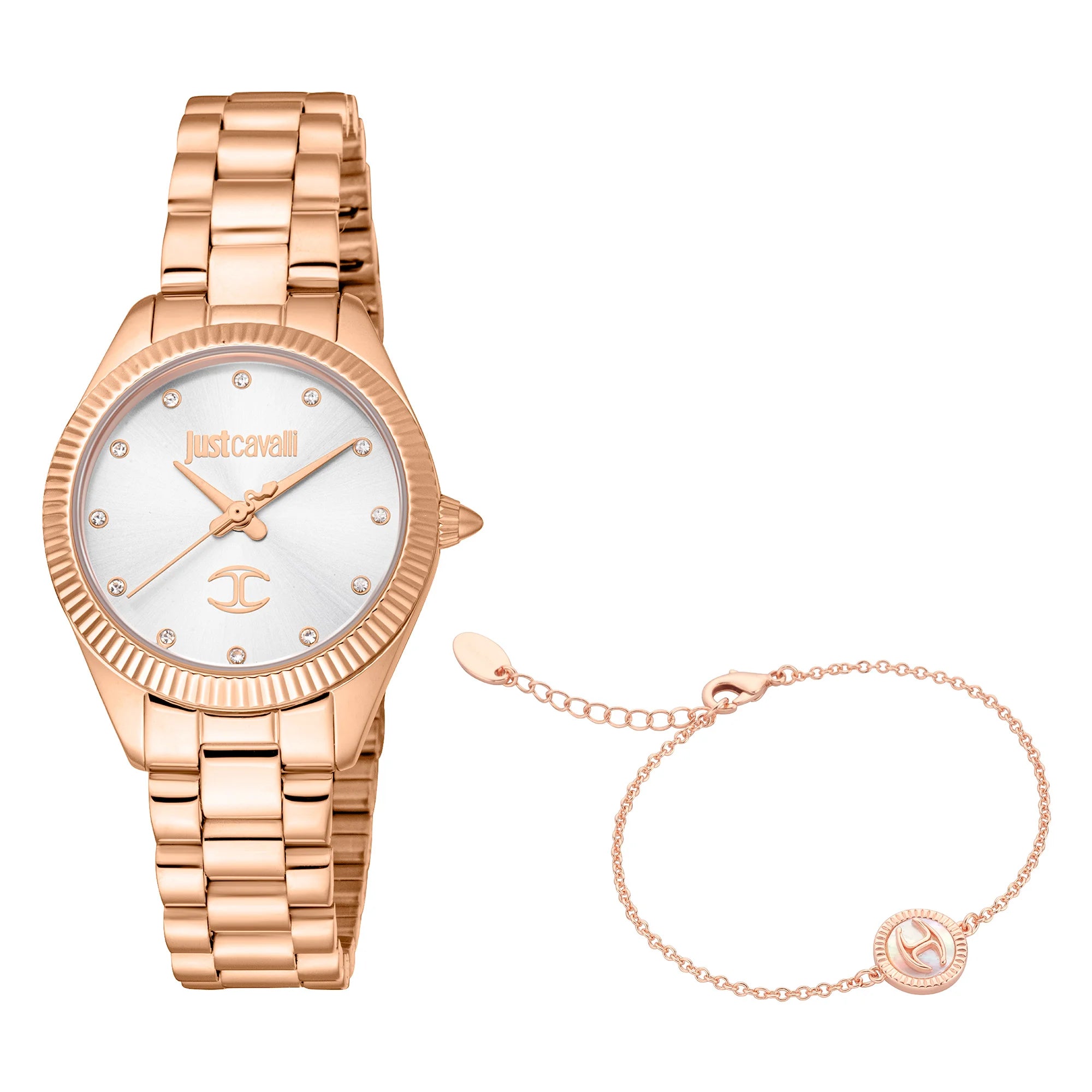 En el ámbito de la elegancia y la sofisticación, el Reloj Just Cavalli de la colección Glam Chic emerge como un faro de estilo y gracia. Elaborado en el corazón de la moda, este exquisito reloj es un testimonio del compromiso de la marca con el lujo y el diseño. La caja redonda, bañada en un cálido tono oro rosa, captura la esencia de la feminidad moderna, mientras que su diámetro de 30 mm asegura una presencia delicada pero llamativa en la muñeca. Con una resistencia al agua de hasta 50 metros, promete tanto belleza como funcionalidad, convirtiéndolo en un compañero perfecto para cualquier ocasión. El cristal mineral protege la esfera gris plateada, donde tres manecillas bailan con gracia, impulsadas por un movimiento de cuarzo preciso. La correa de acero inoxidable, también en oro rosa, se envuelve alrededor de la muñeca con un cierre desplegable de mariposa, ofreciendo seguridad y facilidad de uso. Este Reloj Just Cavalli no es solo un accesorio, es una declaración de pensamiento vanguardista en moda, una pieza que encarna el espíritu de la elegancia contemporánea y el atractivo del diseño atemporal.