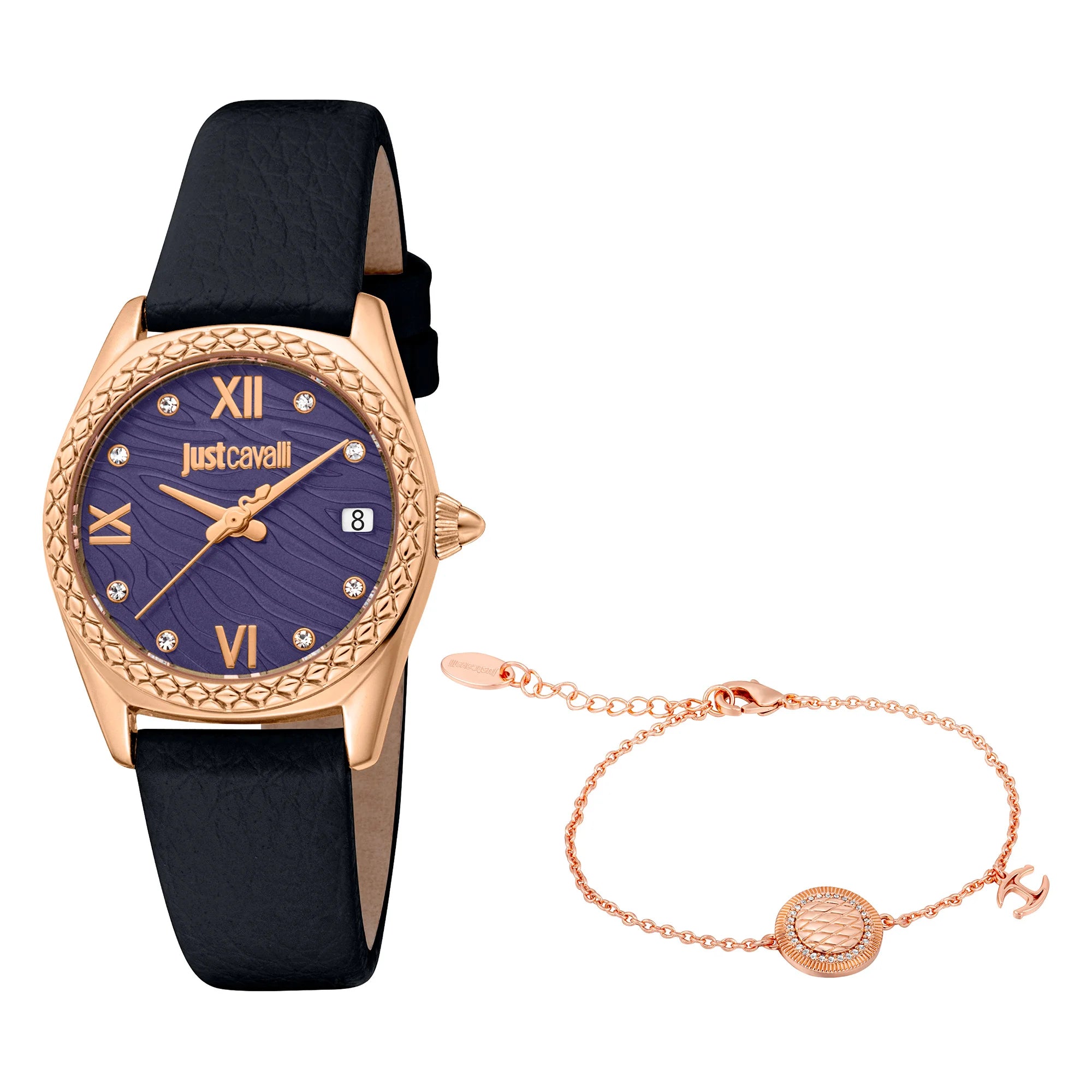 Just Cavalli SET Indomitable Animalier Cuero Negro Violeta