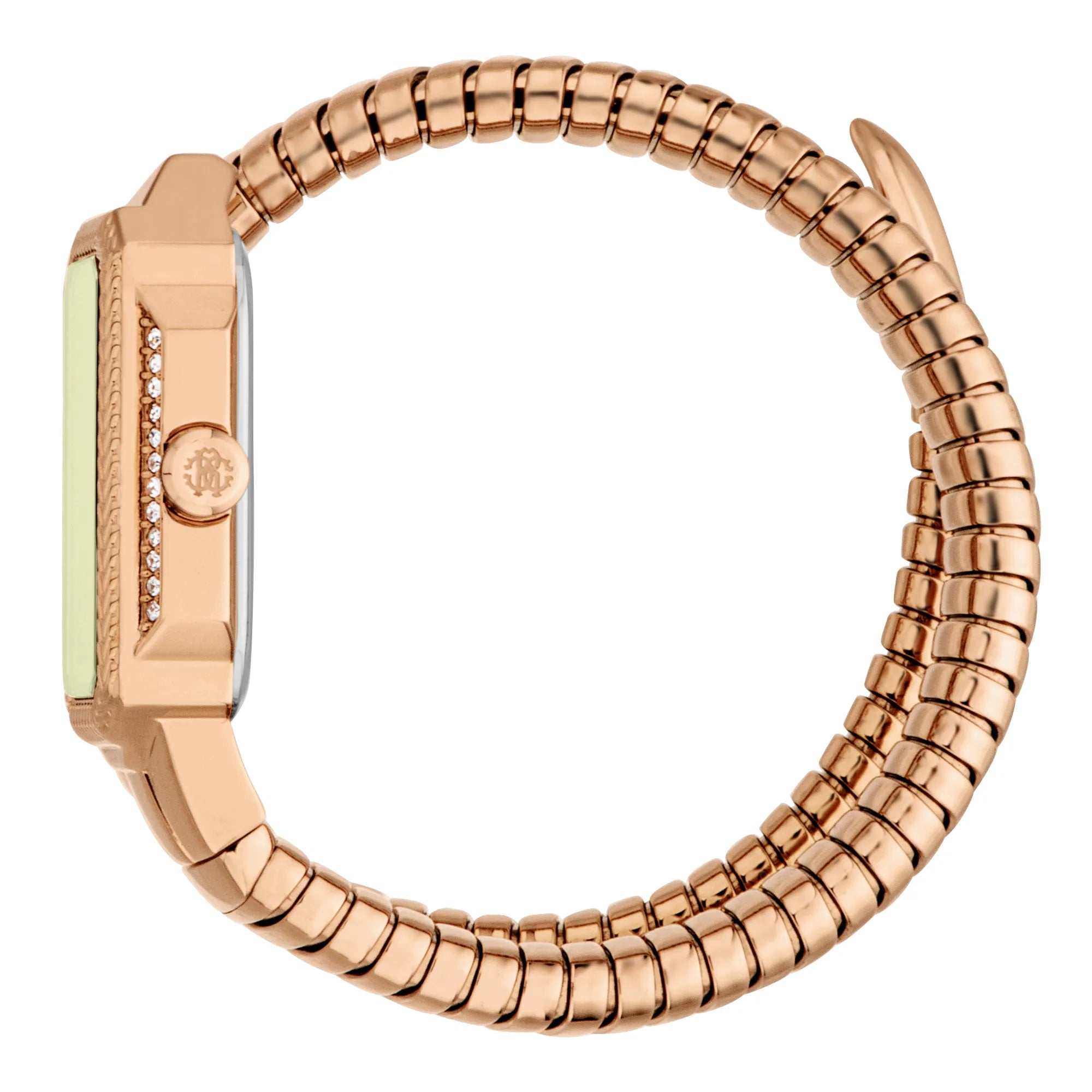 En el mundo de la moda, donde la elegancia se encuentra con la audacia, surge un reloj que captura la esencia de la sofisticación y la valentía. Elaborado en el corazón de la relojería suiza, este reloj Roberto Cavalli Lady es un testimonio de diseño refinado y gusto exquisito. La caja rectangular, bañada en el cálido resplandor del oro rosa, emana una sensación de lujo atemporal, mientras que la esfera verde oliva añade un toque de serenidad inspirada en la naturaleza. Esta armoniosa mezcla de colores crea un contraste llamativo que es a la vez cautivador y único. La correa de acero inoxidable, también en oro rosa, se envuelve alrededor de la muñeca con una sensación de gracia y fortaleza, encarnando el equilibrio perfecto entre feminidad y resistencia. Resistente al agua y equipada con un cristal mineral, este reloj está diseñado para soportar los desafíos de la vida cotidiana mientras mantiene su atractivo. La corona de tirar y empujar y el movimiento de cuarzo aseguran precisión y fiabilidad, convirtiéndolo en un compañero de confianza para la mujer moderna. Con su visualización de dos manecillas y calibre GL22, este reloj no es solo un dispositivo para medir el tiempo, sino una declaración de estilo y carácter. Ya sea asistiendo a un evento glamoroso o enfrentando las demandas de la vida diaria, este reloj Roberto Cavalli Lady es un símbolo de elegancia y audacia, un verdadero reflejo de la mujer que lo lleva.