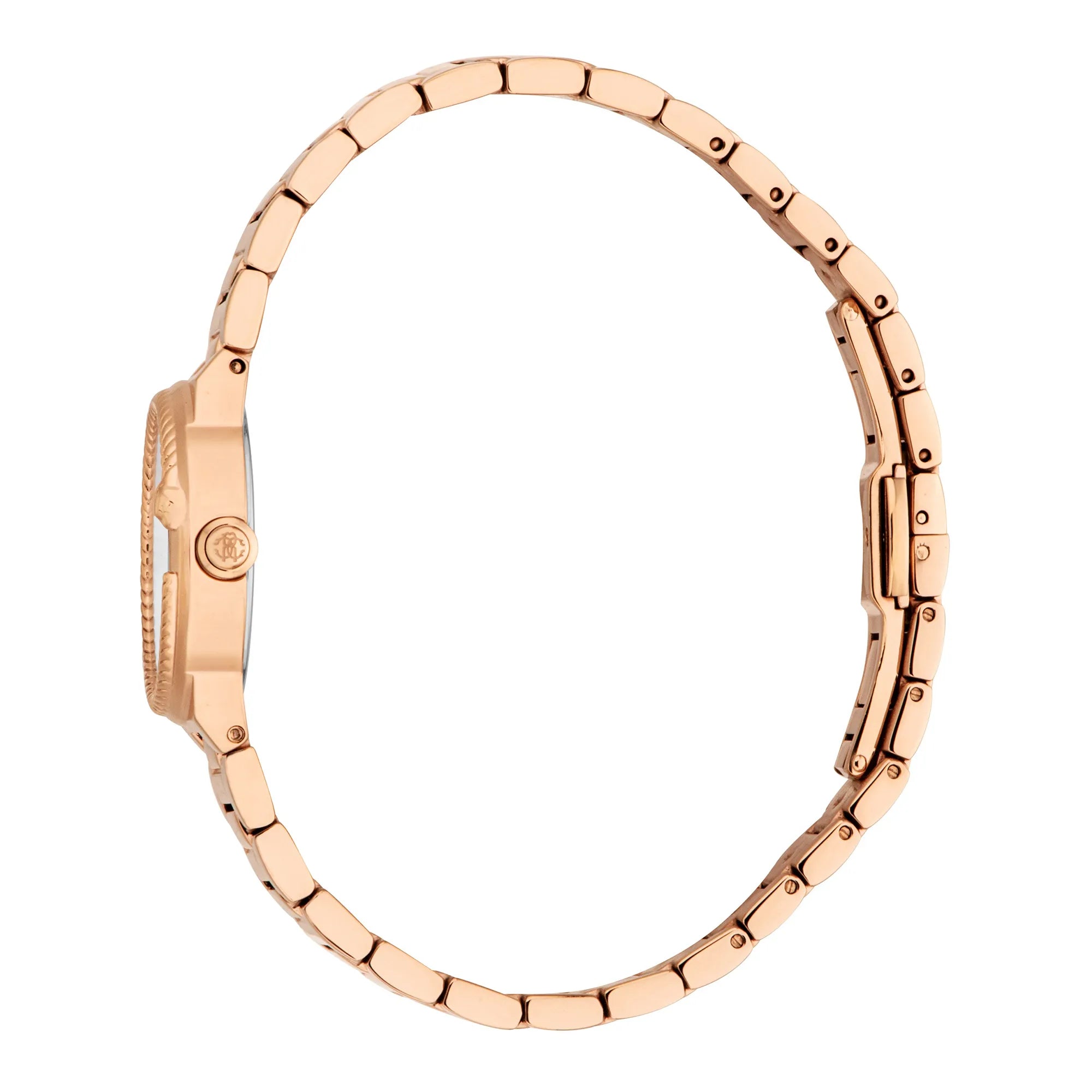 Disfruta del calor del oro rosa con el reloj Roberto Cavalli Lady. La caja redonda y la correa irradian elegancia, complementadas por una esfera gris plateada. Con resistencia al agua y un cierre desplegable de mariposa, es una mezcla perfecta de estilo y practicidad.
