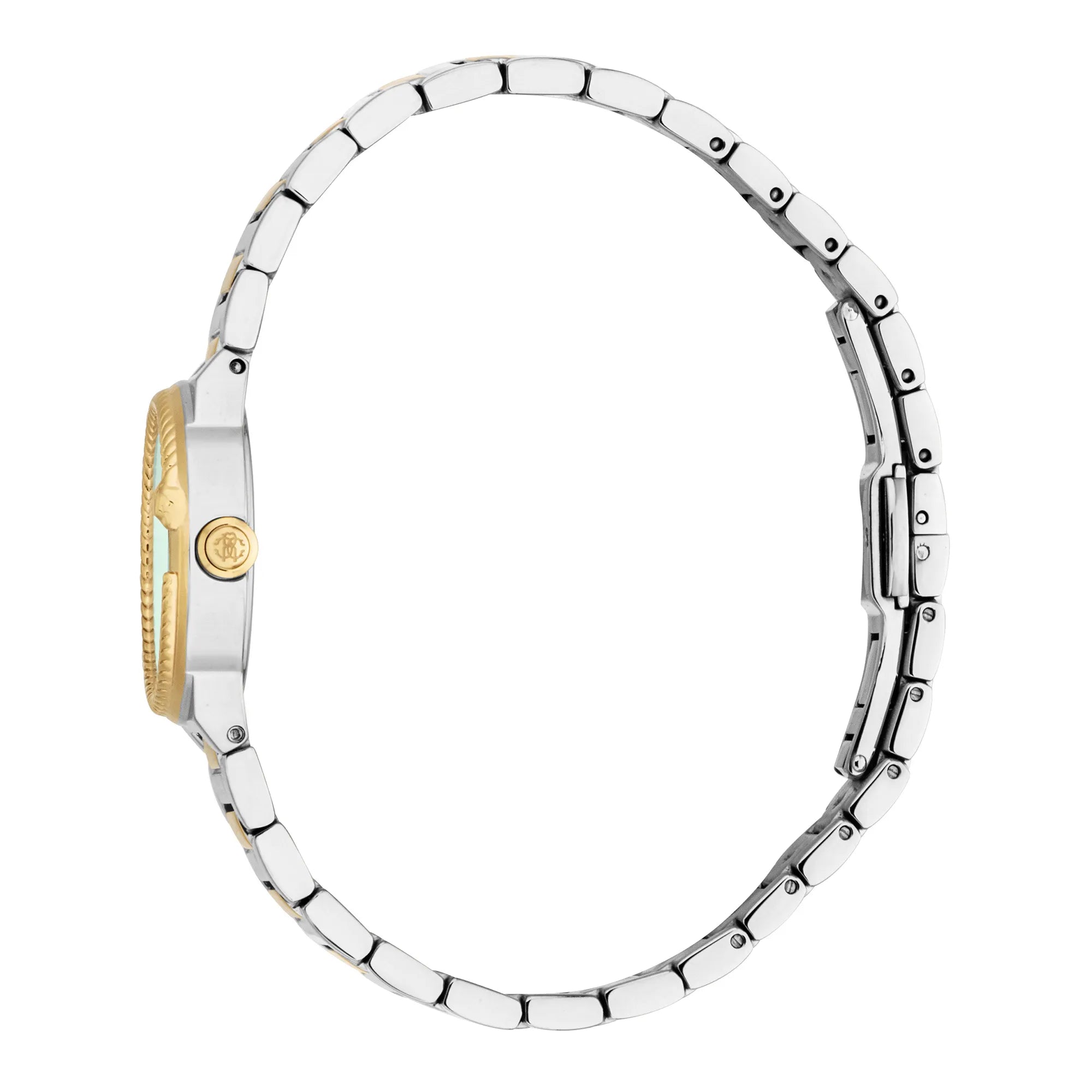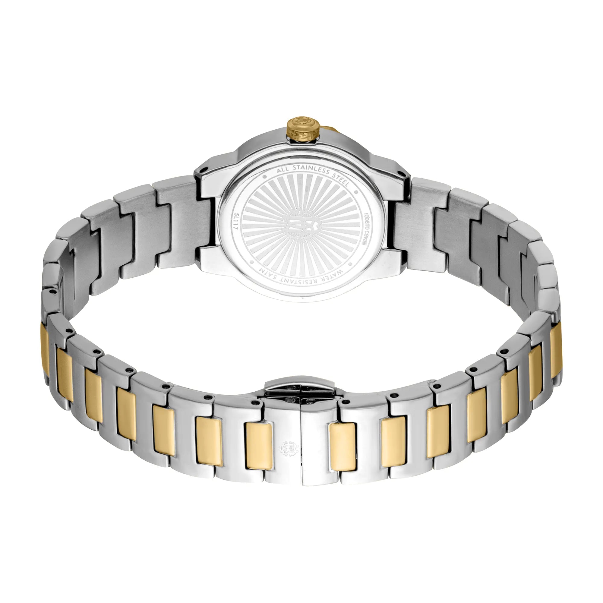 En el mundo de la moda, donde la elegancia se encuentra con la precisión, surge un reloj que encarna la esencia de la sofisticación y el estilo. Fabricado en el corazón de la relojería suiza, este reloj Roberto Cavalli Lady es un testimonio de diseño refinado y artesanía exquisita. Su caja redonda, bañada en un lustroso gris plateado, mide delicadamente 26 mm de diámetro, complementando perfectamente la muñeca femenina. La esfera de cristal mineral revela una hipnotizante carátula verde botella, un tono que susurra elegancia atemporal y profundidad. Bajo su superficie, el fiable movimiento de cuarzo GL32 orquesta la danza de tres manecillas, asegurando precisión con cada tic. La correa de acero inoxidable, también en un gris plateado a juego, envuelve la muñeca con gracia, asegurada por un cierre desplegable tipo mariposa con botón pulsador para facilidad y comodidad. Con una resistencia al agua de hasta 50 metros, este reloj no es solo una declaración de moda, sino un compañero versátil para la mujer moderna. La corona de tirar y empujar añade un toque de practicidad, permitiendo ajustes fáciles. Este reloj Roberto Cavalli es más que un accesorio, es una celebración de la feminidad y la moda, una pieza que habla al corazón de quienes aprecian las cosas finas de la vida.