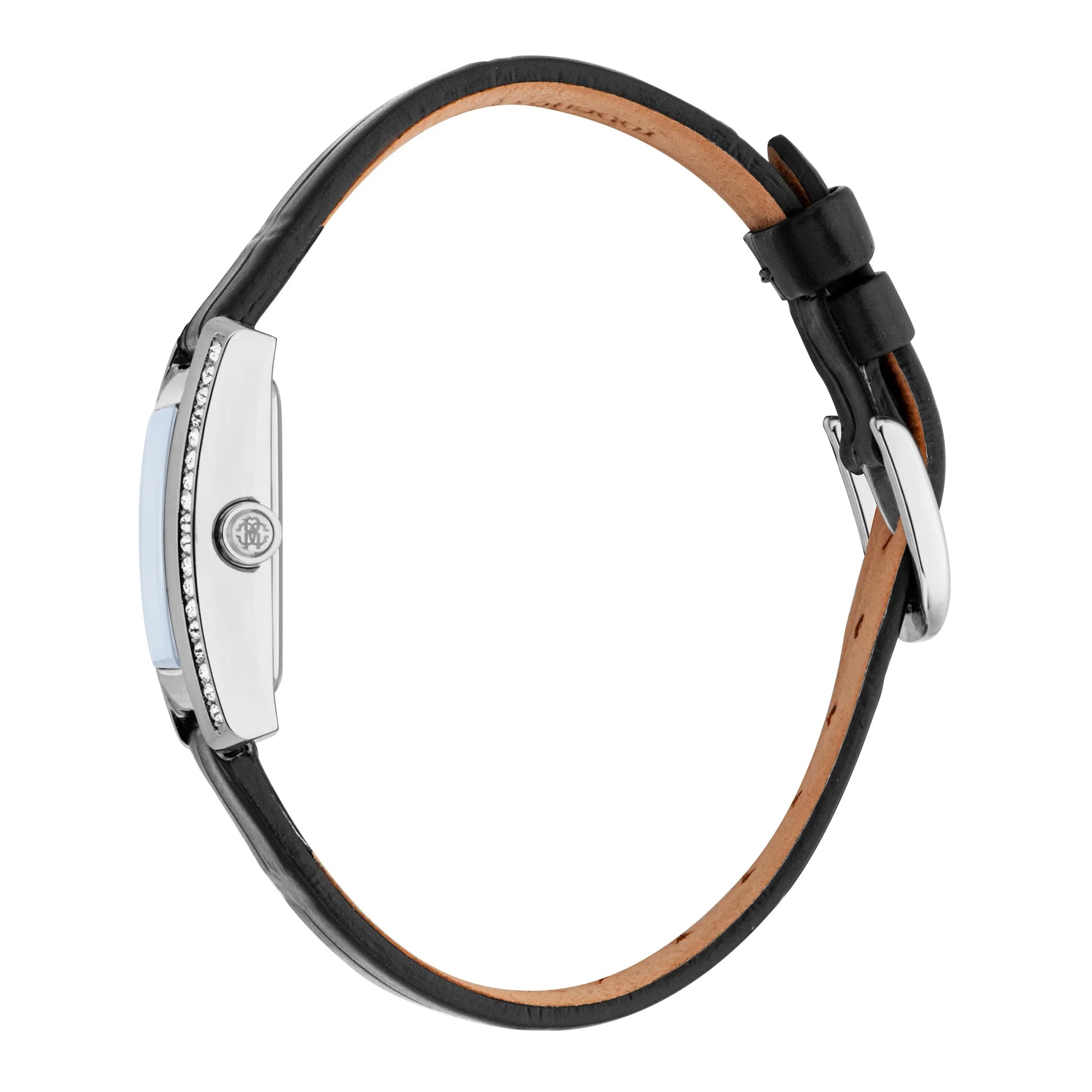 En el mundo de la moda, donde la elegancia se encuentra con la innovación, surge un reloj que captura la esencia de la sofisticación y el estilo. Fabricado en el corazón de la excelencia relojera suiza, este reloj Roberto Cavalli Lady es un testimonio de diseño refinado y atractivo atemporal. Su caja rectangular, bañada en un lustroso gris plateado, emana una sensación de modernidad y gracia, complementando perfectamente las líneas elegantes de su silueta. La esfera azul noche, que recuerda a un cielo estrellado, añade un toque de misterio y profundidad, mientras que la visualización de tres agujas, impulsada por un movimiento de cuarzo preciso, asegura que el tiempo siempre esté a tu favor. El cristal mineral ofrece una vista clara de la esfera, protegida por una corona de tipo pull & push que se integra perfectamente en el diseño. Una correa de cuero negra, suave pero duradera, se ajusta cómodamente alrededor de la muñeca, asegurada por una hebilla clásica de ardillón, convirtiéndolo en un compañero ideal para cualquier ocasión. Resistente al agua y diseñado para la mujer a la vanguardia de la moda, este reloj es más que un accesorio, es una declaración de elegancia e individualidad, una pieza que habla al corazón de quienes se atreven a abrazar su estilo único.