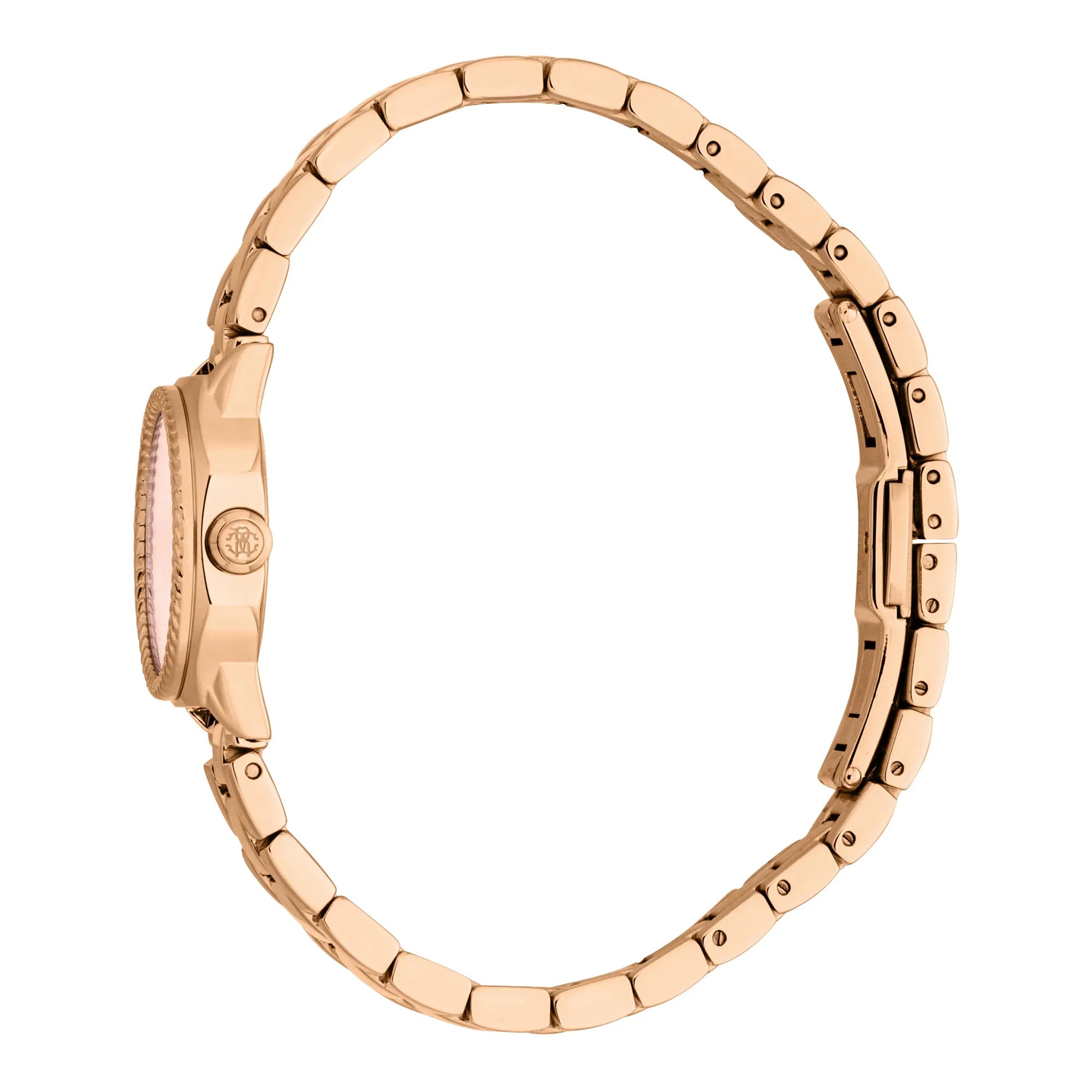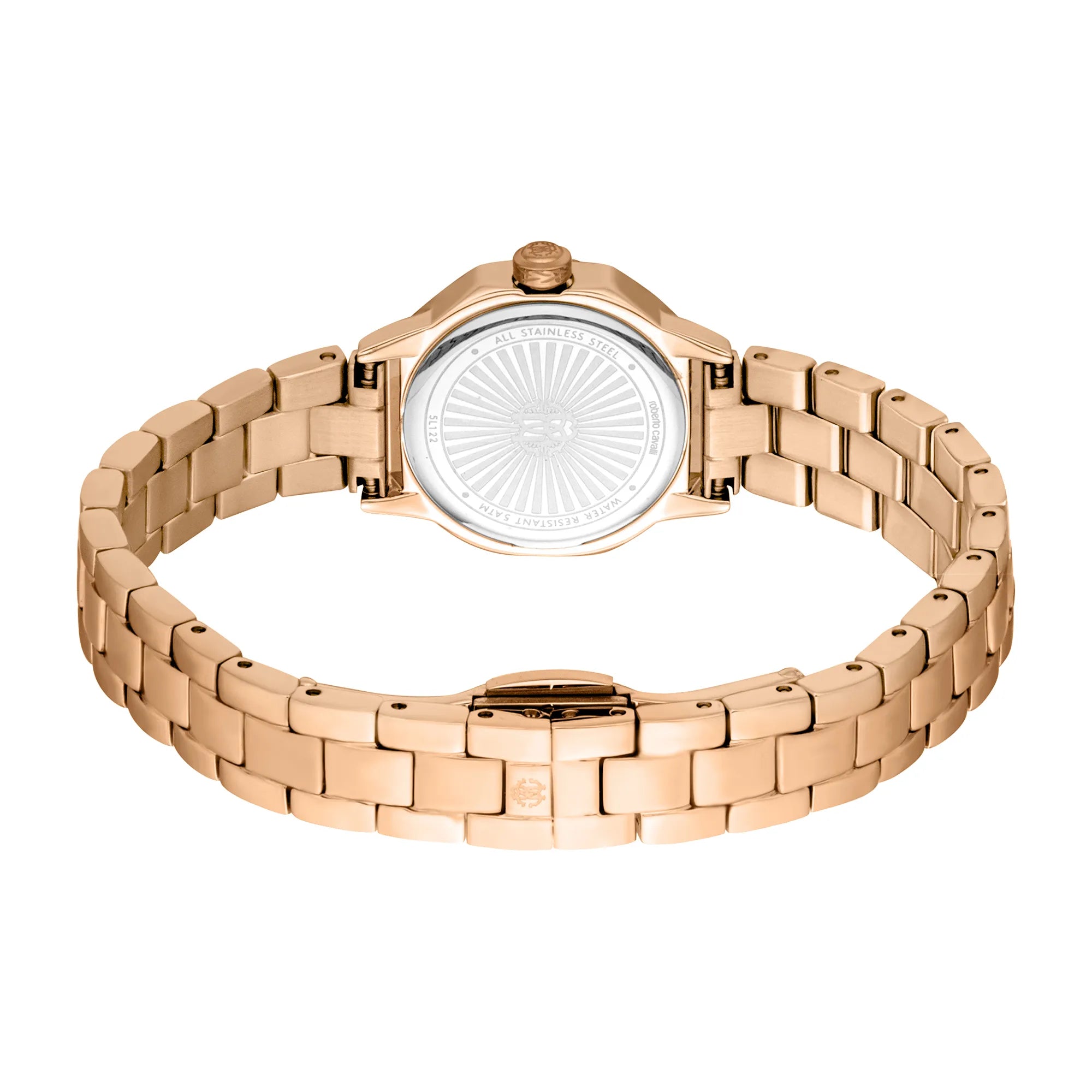En el mundo de la moda, donde la elegancia se encuentra con la innovación, surge un reloj que captura la esencia de la feminidad y la sofisticación. Elaborado en el corazón de la relojería suiza, este reloj Roberto Cavalli Lady es un testimonio de diseño refinado y artesanía exquisita. La caja octagonal, bañada en un lujoso tono oro rosa, emana una sensación de atractivo atemporal, complementando perfectamente la delicada muñeca de la mujer moderna. Con un diámetro de caja de 24 mm, logra el equilibrio perfecto entre sutileza y presencia. El cristal mineral ofrece una vista clara de la encantadora esfera rosa, donde tres manecillas bailan con gracia, impulsadas por la precisión de un movimiento de cuarzo con calibre GL32. La correa de acero inoxidable, también en oro rosa, se envuelve elegantemente alrededor de la muñeca, asegurada por un cierre desplegable tipo mariposa con botón pulsador, garantizando tanto comodidad como estilo. Resistente al agua hasta 50 metros, este reloj es tan versátil como hermoso, listo para acompañarte desde un día en la oficina hasta una velada. La corona de tirar y empujar añade un toque de practicidad, facilitando los ajustes de hora. Este reloj Roberto Cavalli Lady no es solo un accesorio, es una declaración de pensamiento vanguardista en moda, una celebración de lo audaz y lo bello, y un guiño al estilo pop con su vibrante esfera rosa. Abraza el atractivo de esta exquisita pieza y deja que sea un reflejo de tu estilo y gracia únicos.