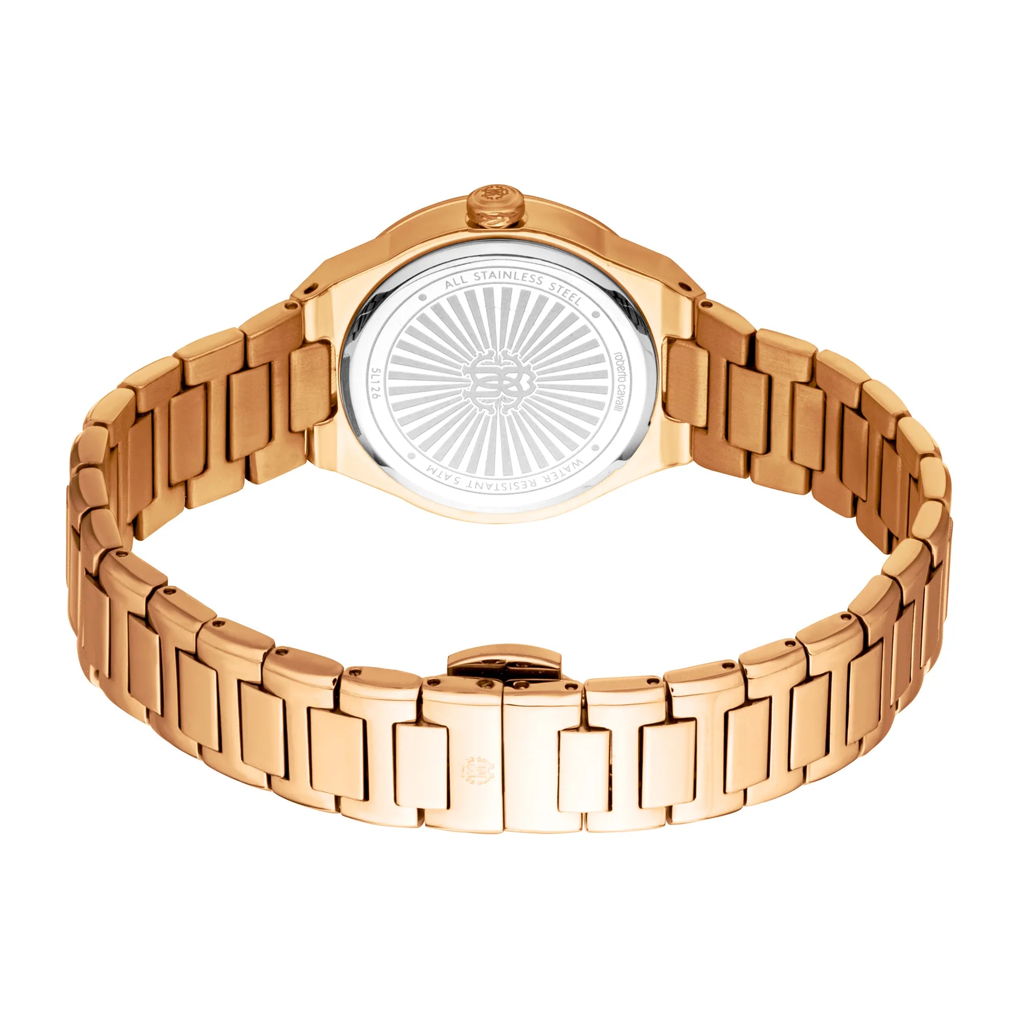 Déjese llevar por el encanto romántico del reloj Roberto Cavalli Lady, adornado con una caja redonda de oro rosa y una esfera gris plateada. La correa de acero inoxidable en oro rosa añade un toque de calidez. Resistente al agua hasta 50 metros, encarna la elegancia atemporal.