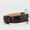 En el ámbito de la elegancia atemporal, el ORIENT AC0M Bambino 38mm emerge como un faro de sofisticación clásica. Elaborado en el corazón de la tradición relojera, este reloj encarna la esencia del diseño refinado con su caja redonda de color gris plateado que rodea con gracia un diámetro de 38 mm. El cristal mineral ofrece una ventana clara al alma de esta pieza, donde una esfera beige sirve como lienzo para la danza artística de tres manecillas, impulsadas por la precisión del calibre F6724. Con 22 joyas meticulosamente colocadas, el movimiento es una sinfonía de maestría mecánica, ofreciendo capacidades tanto de cuerda manual como automática. La correa de cuero marrón chocolate, asegurada con una hebilla de ardillón, envuelve la muñeca en un cálido abrazo, mientras que la parte trasera transparente revela el intrincado ballet de engranajes y resortes. La resistencia al agua asegura que este reloj sea tan práctico como hermoso, listo para acompañarte en las aventuras de la vida. El calendario de fecha añade un toque de practicidad, integrado perfectamente en el diseño. Este reloj ORIENT Classic no es solo un guardatiempo, es una declaración de estilo y un testimonio del atractivo perdurable de la relojería clásica.