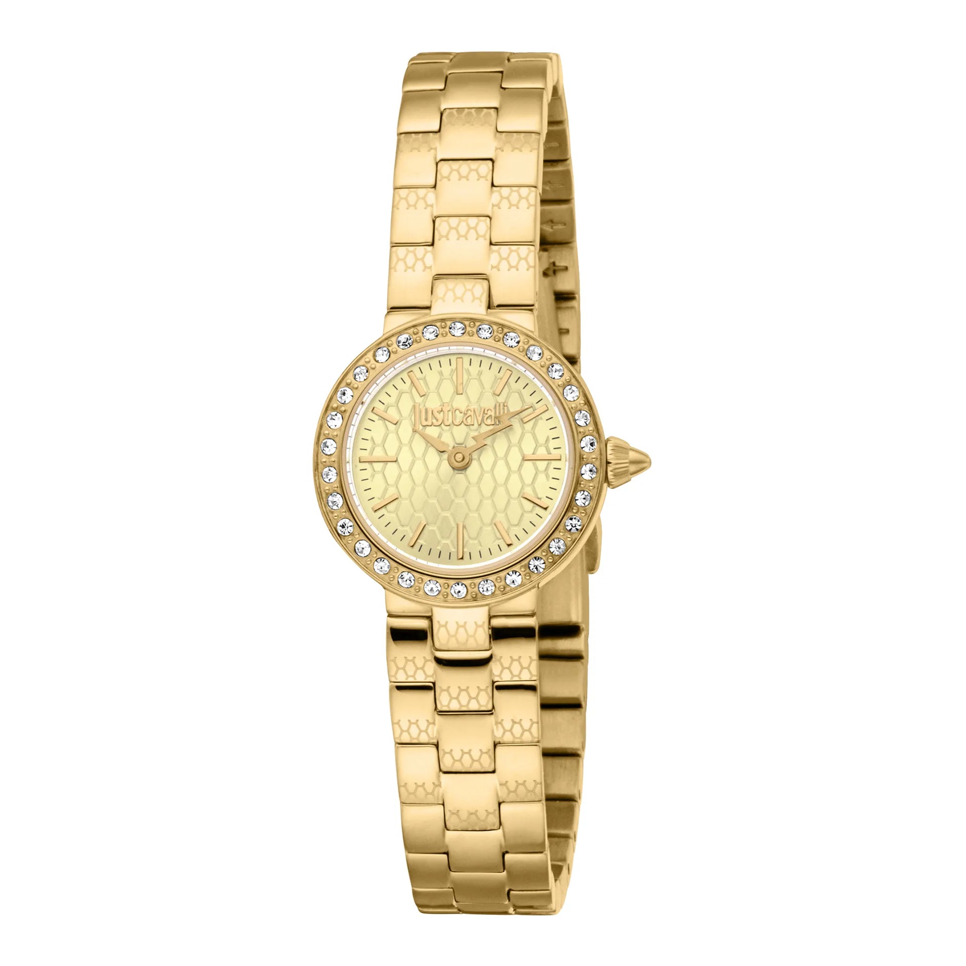 En el mundo de la moda, donde la elegancia se encuentra con la audacia, surge un reloj que captura la esencia de la sofisticación y el estilo. Fabricado en el corazón de la relojería suiza, este Just Cavalli Watch de la colección Glam Chic es un testimonio de diseño refinado y artesanía exquisita. Su caja redonda, bañada en el cálido resplandor del oro amarillo, mide delicadamente 23 mm, convirtiéndolo en un compañero perfecto para la mujer moderna que valora tanto la gracia como la funcionalidad. La esfera champán, que recuerda a un atardecer dorado, añade un toque de opulencia, mientras que el movimiento de cuarzo de dos agujas garantiza precisión y fiabilidad. El cristal mineral protege la esfera, ofreciendo claridad y durabilidad, mientras que la corona de tipo pull & push proporciona facilidad de ajuste. La correa de acero inoxidable, también en oro amarillo, se envuelve alrededor de la muñeca con un sentido de lujo, asegurada por un cierre desplegable con botón pulsador para mayor comodidad. Con una resistencia al agua de hasta 50 metros, este reloj no es solo una declaración de moda, sino un accesorio versátil para cualquier ocasión. Su presencia brillante y diseño elegante lo convierten en un imprescindible para quienes se atreven a destacar, encarnando el espíritu audaz y chic de Just Cavalli.