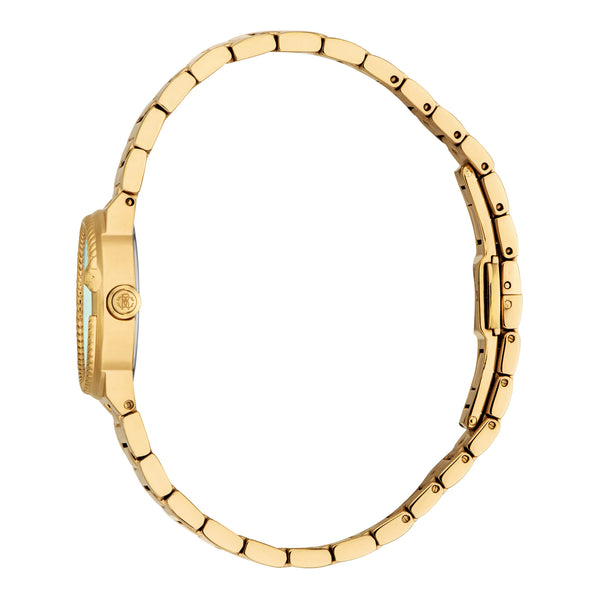 En el mundo de la elegancia y la sofisticación, donde el tiempo no solo se mide sino que se celebra, surge una obra maestra que encarna la esencia del lujo refinado. Elaborado en el corazón de la precisión suiza, este reloj Roberto Cavalli Lady es un testimonio de la dedicación de la marca al diseño vanguardista y a la artesanía exquisita. La caja redonda, bañada en el opulento resplandor del oro amarillo, captura la luz con cada movimiento, creando una danza de brillo en la muñeca. Con un diámetro de caja de 26 mm, ofrece una presencia delicada pero llamativa, perfecta para la mujer moderna que aprecia la sutileza con un toque de grandeza. El cristal mineral protege la esfera verde botella, un tono que susurra bosques profundos y elegancia atemporal, mientras que la visualización de tres agujas, impulsada por el fiable movimiento de cuarzo GL32, asegura precisión en cada tic. La correa de acero inoxidable, también en oro amarillo, envuelve la muñeca con un sentido de continuidad y gracia, asegurada por un cierre desplegable tipo mariposa con botón pulsador para facilidad y comodidad. Resistente al agua hasta 50 metros, este reloj no es solo un accesorio sino un compañero para las aventuras de la vida, combinando funcionalidad con moda. Una verdadera encarnación de la visión de Roberto Cavalli, esta pieza de relojería es más que un reloj, es una declaración de estilo, una celebración de la feminidad y un guiño al atractivo atemporal de la artesanía suiza.