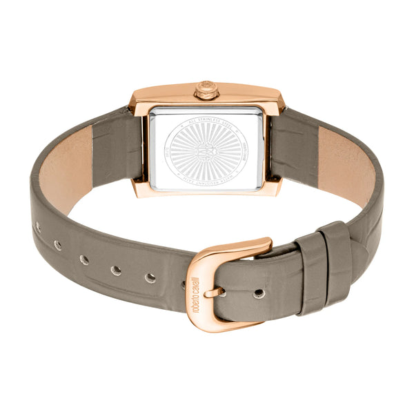 En el mundo de la moda, donde la elegancia se encuentra con la innovación, surge un reloj que captura la esencia de la sofisticación y el estilo. Elaborado en el corazón de la relojería suiza, este reloj Roberto Cavalli Lady es un testimonio de diseño refinado y artesanía exquisita. La caja rectangular, bañada en un lujoso tono oro rosa, emana una sensación de atractivo atemporal, complementando perfectamente la delicada muñeca de la mujer moderna. Su esfera de cristal mineral ofrece una vista clara del dial gris plateado, donde tres manecillas bailan con gracia, impulsadas por la precisión de un movimiento de cuarzo con calibre GL34. La correa de cuero gris claro, asegurada con una hebilla de ardillón, se ajusta cómodamente alrededor de la muñeca, añadiendo un toque de elegancia discreta a cualquier conjunto. Resistente al agua, este reloj es tan práctico como hermoso, listo para acompañarte en las aventuras de la vida. La corona de tirar y empujar garantiza ajustes de hora fáciles, convirtiéndolo en un compañero confiable para la mujer a la vanguardia de la moda. Con su armoniosa combinación de colores y materiales, este reloj Roberto Cavalli Lady no es solo un accesorio, sino una declaración de estilo y gracia, destinado a dejar una impresión duradera dondequiera que vaya.