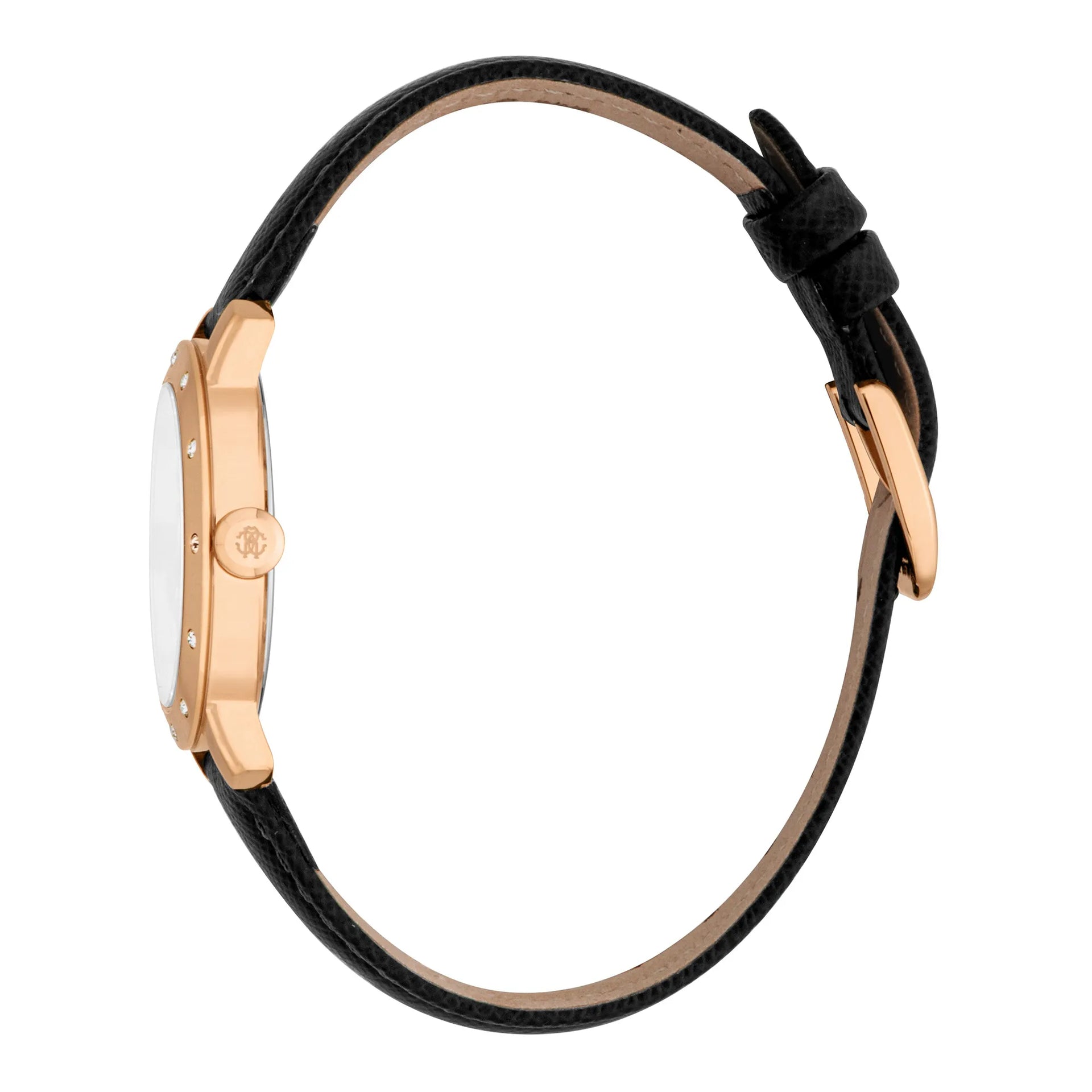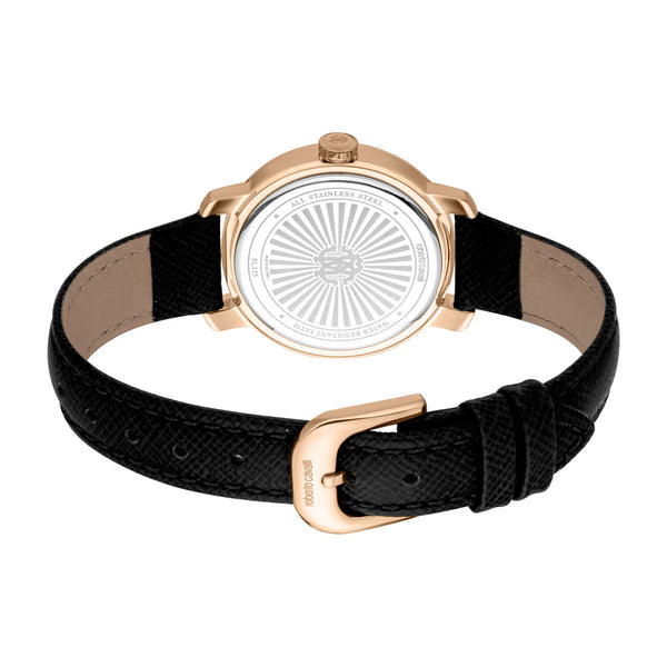 En el mundo de la moda, donde la elegancia se encuentra con la innovación, surge un reloj que captura la esencia de la sofisticación y el estilo. Elaborado en el corazón de la relojería suiza, este reloj Roberto Cavalli Lady es un testimonio de diseño refinado y artesanía exquisita. La caja redonda, bañada en un lujoso tono oro rosa, emite un brillo cálido que complementa la delicada muñeca de la mujer moderna. Con un diámetro de caja de 30 mm, logra el equilibrio perfecto entre sutileza y presencia, convirtiéndolo en un accesorio ideal para cualquier ocasión. El cristal mineral protege una esfera gris plateada, donde tres agujas bailan con gracia, impulsadas por la precisión de un movimiento de cuarzo con calibre GL32. La corona de tirar y empujar añade un toque de practicidad, asegurando facilidad de uso. Rodeando la muñeca hay una elegante correa de cuero negro, asegurada con una hebilla de ardillón, que ofrece tanto comodidad como estilo. Con una resistencia al agua de hasta 50 metros, este reloj es tan versátil como hermoso, listo para acompañarte desde la sala de juntas hasta una salida nocturna. El reloj Roberto Cavalli Lady es más que un simple reloj, es una declaración de pensamiento vanguardista en moda y elegancia atemporal, diseñado para la mujer que conoce su valor y no tiene miedo de mostrarlo.