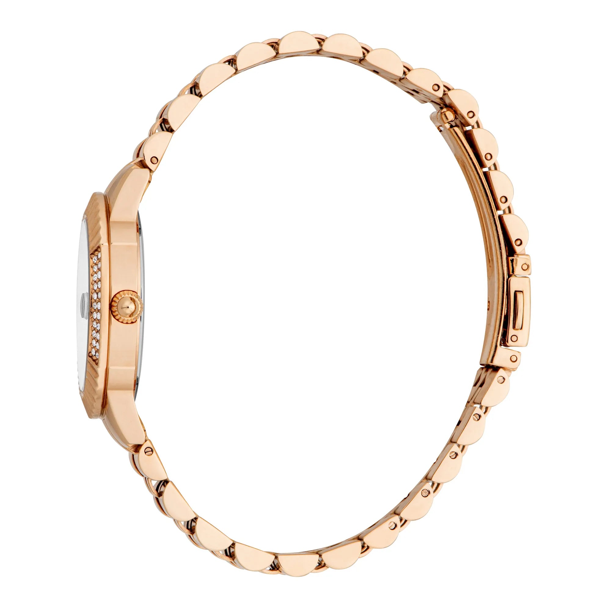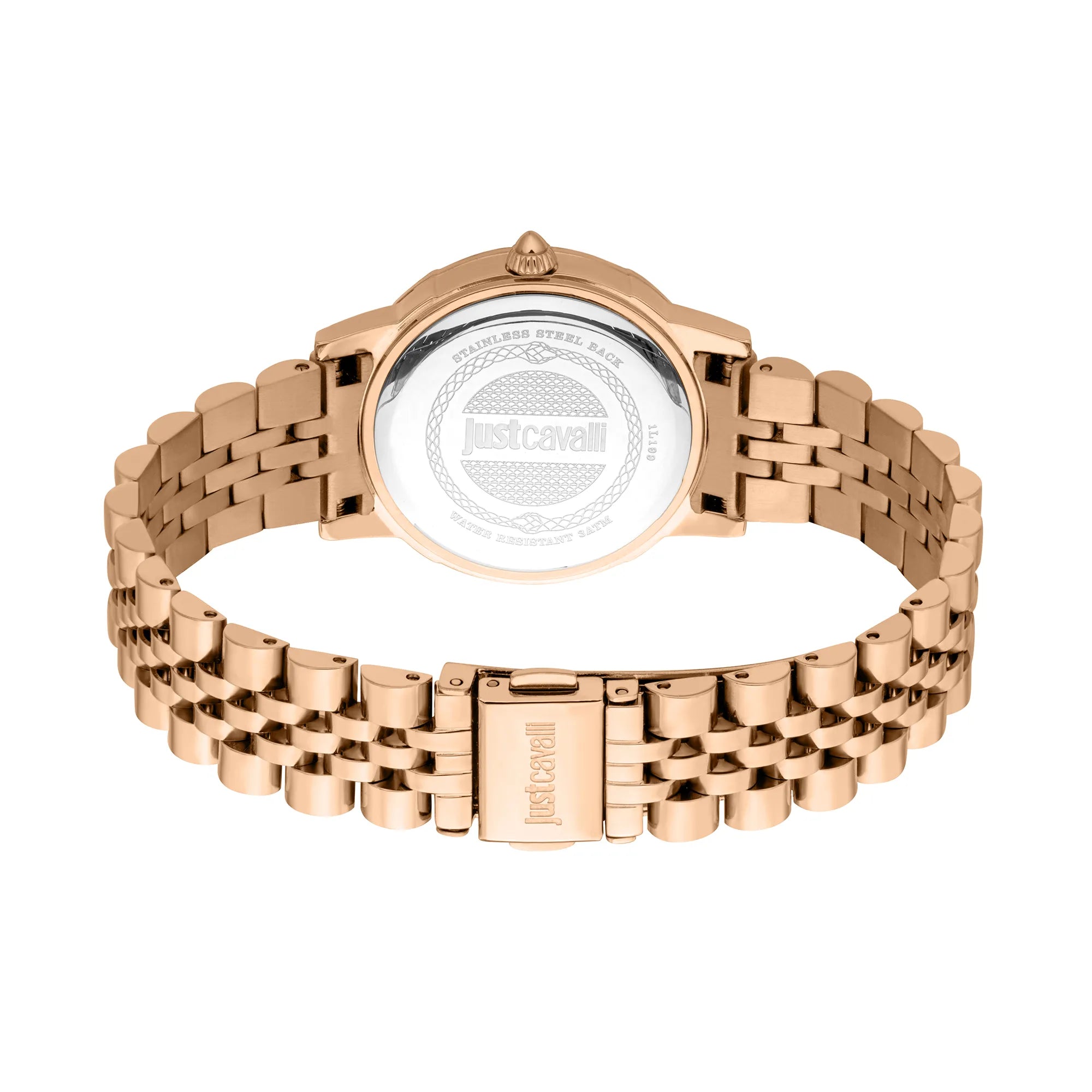 En el reino de la elegancia atemporal, donde la moda se encuentra con la función, surge una obra maestra que captura la esencia de la sofisticación: este Just Cavalli Watch. Elaborado en el corazón del estilo, encarna el espíritu de la mujer moderna que abraza tanto la gracia como la audacia. La caja redonda, bañada en un lujoso tono oro rosa, irradia una calidez que complementa la delicada muñeca que adorna. Con un diámetro de 32 mm, logra el equilibrio perfecto entre sutileza y declaración, convirtiéndolo en un compañero ideal para cualquier ocasión. La correa de acero inoxidable, también en oro rosa, envuelve la muñeca con un sentido de diseño refinado, asegurada por un cierre desplegable tipo mariposa con botón pulsador para facilidad y elegancia. La esfera blanca antigua, que recuerda a la belleza clásica, es un lienzo donde el tiempo se pinta con precisión mediante tres manecillas, impulsadas por un movimiento de cuarzo confiable. Un calendario de fecha añade un toque de practicidad, asegurando que quien lo lleva siempre esté en sintonía con el ritmo de la vida. Resistente al agua y protegido por un cristal mineral, este reloj es tan resistente como hermoso. La corona de tirar y empujar ofrece una interacción fluida, permitiendo al usuario ajustar la hora con gracia. Este Just Cavalli Watch no es solo un accesorio, es una declaración de estilo, un testimonio del atractivo de la colección Just Cavalli Glam Chic, y una celebración de la mujer que lo lleva con confianza y aplomo.