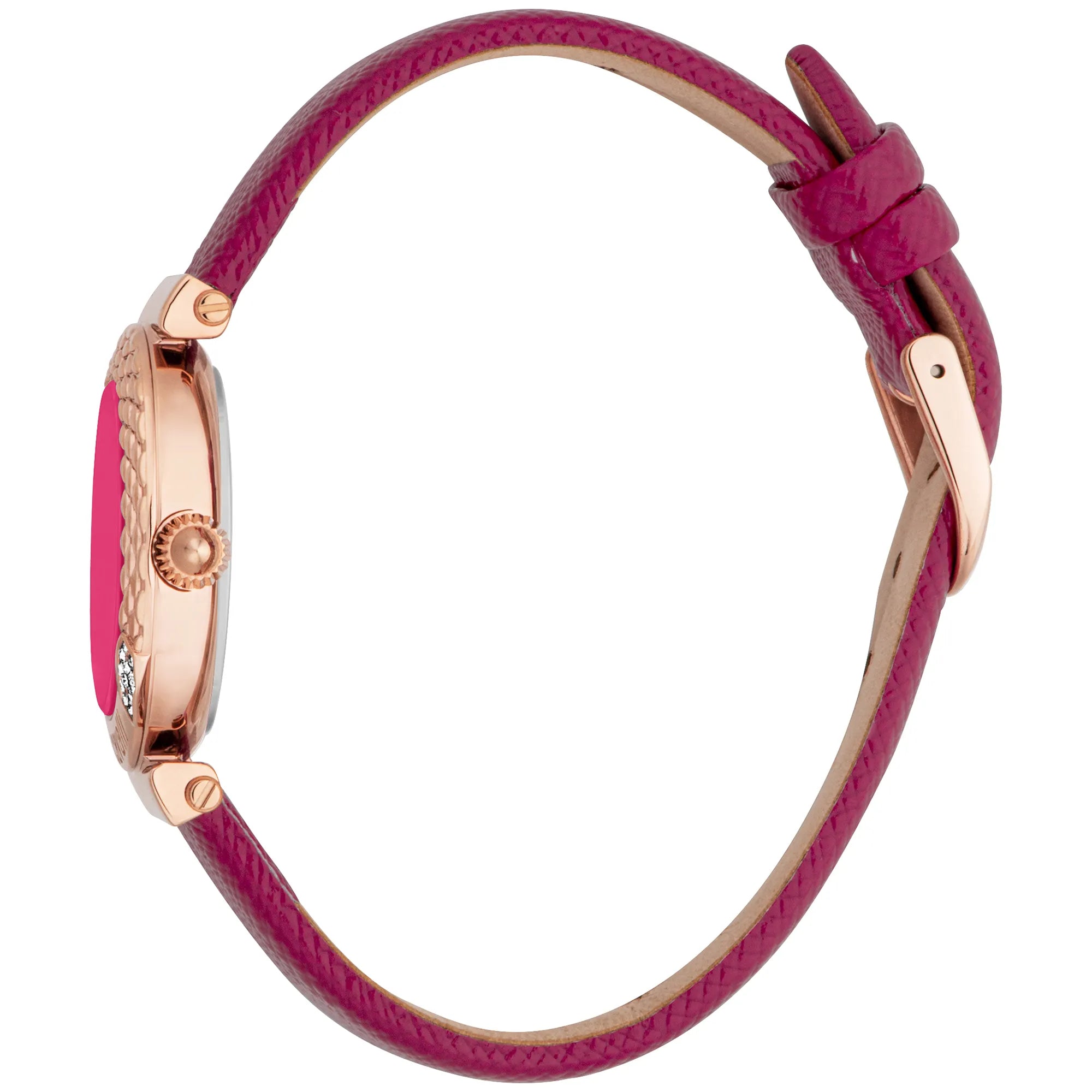 En el ámbito de la moda, donde la elegancia se encuentra con la audacia, surge un reloj que captura la esencia de la feminidad moderna con un toque de estilo atrevido. Fabricado en el corazón de la innovación estilística, este Just Cavalli Watch de la colección JC1L332 Curiosa es un testimonio del compromiso de la marca con el diseño audaz y la artesanía exquisita. La caja redonda, bañada en un lujoso tono oro rosa, irradia una sensación de sofisticación atemporal, mientras que su diámetro de 30 mm asegura una presencia delicada pero llamativa en la muñeca. La correa de cuero violeta brezo, combinada con una esfera a juego, introduce un toque de color que habla del espíritu vibrante de las fashionistas contemporáneas. Esta armoniosa mezcla de tonos no es solo un deleite visual, sino una declaración de individualidad y confianza. El cristal mineral protege la esfera, garantizando claridad y durabilidad, mientras que la corona de tipo pull & push ofrece facilidad de ajuste. Con una resistencia al agua de hasta 50 metros, este reloj es tan práctico como elegante, listo para acompañarte en las aventuras de la vida. El movimiento de cuarzo garantiza precisión, y la visualización de tres agujas aporta un toque clásico a esta obra maestra moderna. Asegurado con una hebilla de ardillón, este reloj no es solo un accesorio, sino un compañero que celebra el espíritu audaz de quienes se atreven a destacar.