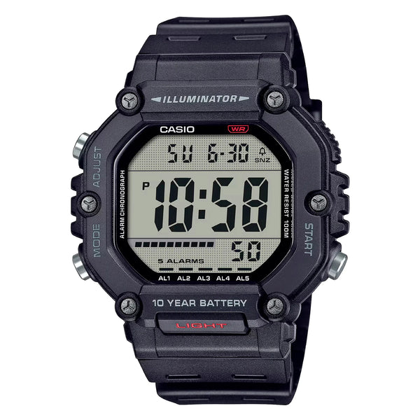 El espíritu de innovación de Casio brilla en este reloj deportivo negro y ligero, que cuenta con una caja de 50 mm, esfera LCD, correa de resina y movimiento de cuarzo confiable, con resistencia al agua de 100 m para quienes viven la vida en movimiento.
