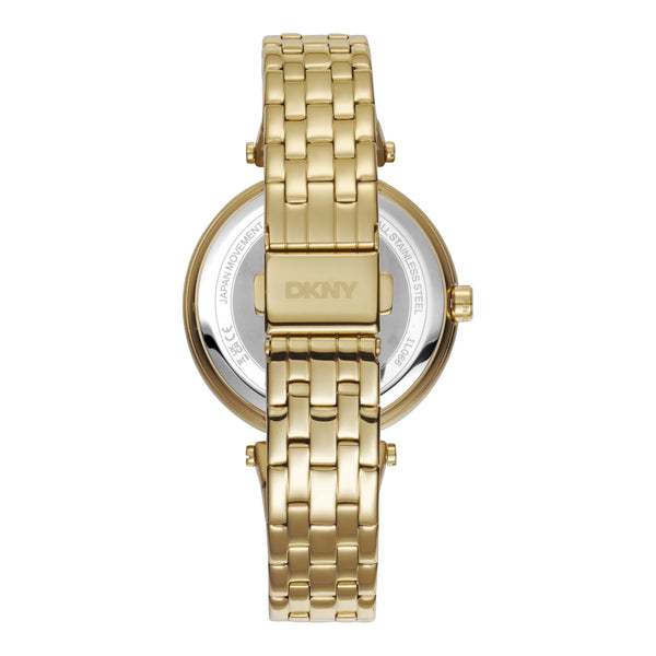 En el corazón de la elegancia urbana, el reloj DKNY Downtown Multi emerge como un faro de estilo contemporáneo y sofisticación. Elaborado en una silueta redonda, su caja de oro amarillo brilla con un diseño refinado que captura la esencia de la moda moderna. Con un diámetro de 38 mm, este reloj está perfectamente proporcionado para la mujer exigente que aprecia tanto la forma como la función. La esfera champán, que recuerda a un atardecer dorado, añade un toque de calidez y lujo, mientras que la pantalla multifunción ofrece una combinación perfecta de practicidad y elegancia. La correa de acero inoxidable, también en un tono de oro amarillo a juego, se envuelve alrededor de la muñeca con un sentido de continuidad y gracia, asegurada por un cierre desplegable tipo mariposa con botón pulsador para facilidad y seguridad. Impulsado por un movimiento de cuarzo preciso, el reloj cuenta con un calibre 6P23, que garantiza una medición exacta del tiempo y una función de calendario diario que te mantiene sincronizada con tu agenda. Con una resistencia al agua de hasta 50 metros, está diseñado para acompañarte en las aventuras de la vida, ya sea navegando por las bulliciosas calles de la ciudad o disfrutando de un momento sereno junto al agua. La corona de tirar y empujar añade un toque de encanto clásico, mientras que el cristal mineral protege la esfera con claridad y resistencia. Este reloj DKNY no es solo un reloj, es una declaración de estilo, un reflejo de la energía vibrante de la ciudad y un testimonio del atractivo atemporal del oro amarillo.