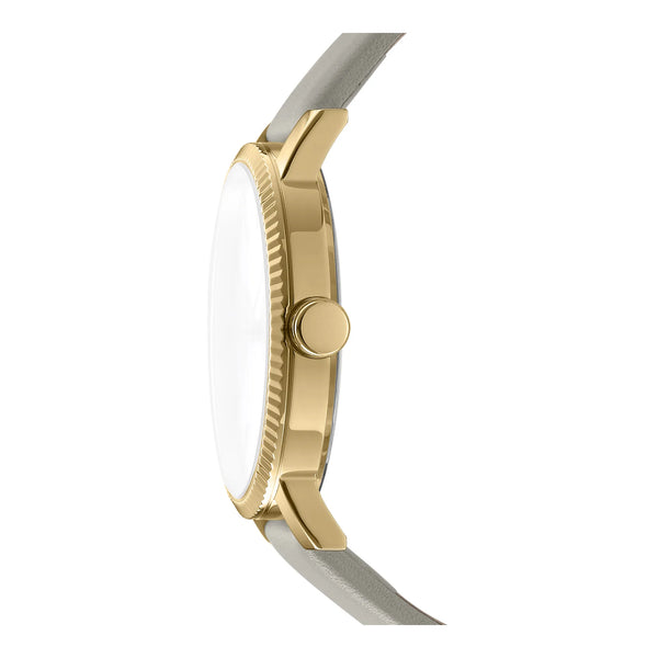 En el bullicioso corazón de la ciudad de Nueva York, donde la moda se encuentra con la función, surge un reloj que encarna el espíritu de la elegancia moderna. El reloj DKNY DK1L034 Soho Maxi es un testimonio de la energía vibrante de la ciudad que nunca duerme. Con su caja redonda chapada en lujoso oro amarillo, este reloj captura la esencia de la sofisticación y el estilo. La caja de 40 mm de diámetro está perfectamente proporcionada para la mujer contemporánea que aprecia tanto la forma como la función. Elaborado con un diseño refinado, ofrece resistencia al agua hasta 50 metros, haciéndolo tan práctico como hermoso. La esfera de cristal mineral protege la carátula, que es una mezcla armoniosa de tonos gris plateado, que evocan el elegante horizonte de Manhattan. La corona de tirar y empujar añade un toque de encanto clásico, mientras que el movimiento de cuarzo asegura precisión en cada tic. La correa de cuero gris plateado, asegurada con una hebilla de ardillón, se ajusta cómodamente alrededor de la muñeca, ofreciendo una combinación perfecta de comodidad y estilo. Este reloj no es solo un guardatiempo, es una pieza de declaración para la mujer a la vanguardia de la moda. El toque de gris plateado en la carátula añade un giro contemporáneo, convirtiéndolo en un accesorio versátil para cualquier atuendo. Ya sea que estés navegando por la jungla urbana o asistiendo a una elegante soirée, este reloj DKNY es tu compañero perfecto, reflejando el mundo dinámico y en constante evolución de la moda.