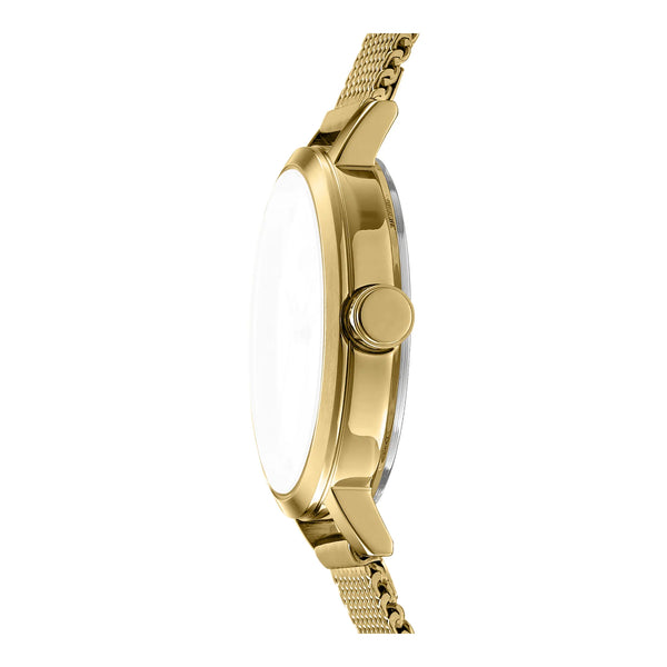 En el bullicioso corazón de la ciudad de Nueva York, donde la moda se encuentra con la función, surge un reloj que encarna el espíritu de la elegancia urbana. El reloj DKNY DK1L037 Soho Mini es un testimonio del estilo y la sofisticación de la mujer moderna. Fabricado en una forma redonda refinada, su caja de oro amarillo brilla con un atractivo lujoso, complementando perfectamente la energía vibrante de la ciudad que nunca duerme. Con un diámetro de caja de 30 mm, este reloj está diseñado para sentarse con gracia en la muñeca, ofreciendo una presencia sutil pero llamativa. La esfera gris plateada, que recuerda al icónico horizonte de la ciudad al anochecer, está adornada con tres manecillas impulsadas por un movimiento de cuarzo preciso, asegurando que el tiempo siempre esté a tu favor. El cristal mineral añade una capa de durabilidad, protegiendo el reloj del ajetreo y el bullicio de la vida diaria. Su correa de acero inoxidable, también en un tono de oro amarillo a juego, se envuelve alrededor de la muñeca con un cierre deslizante ajustable, ofreciendo tanto comodidad como seguridad. Resistente al agua hasta 50 metros, este reloj es tan versátil como elegante, listo para acompañarte desde un día en la oficina hasta una noche en la ciudad. El reloj DKNY Soho Mini es más que un accesorio, es una declaración de pensamiento vanguardista en moda, un reflejo de la mujer dinámica que lo lleva.