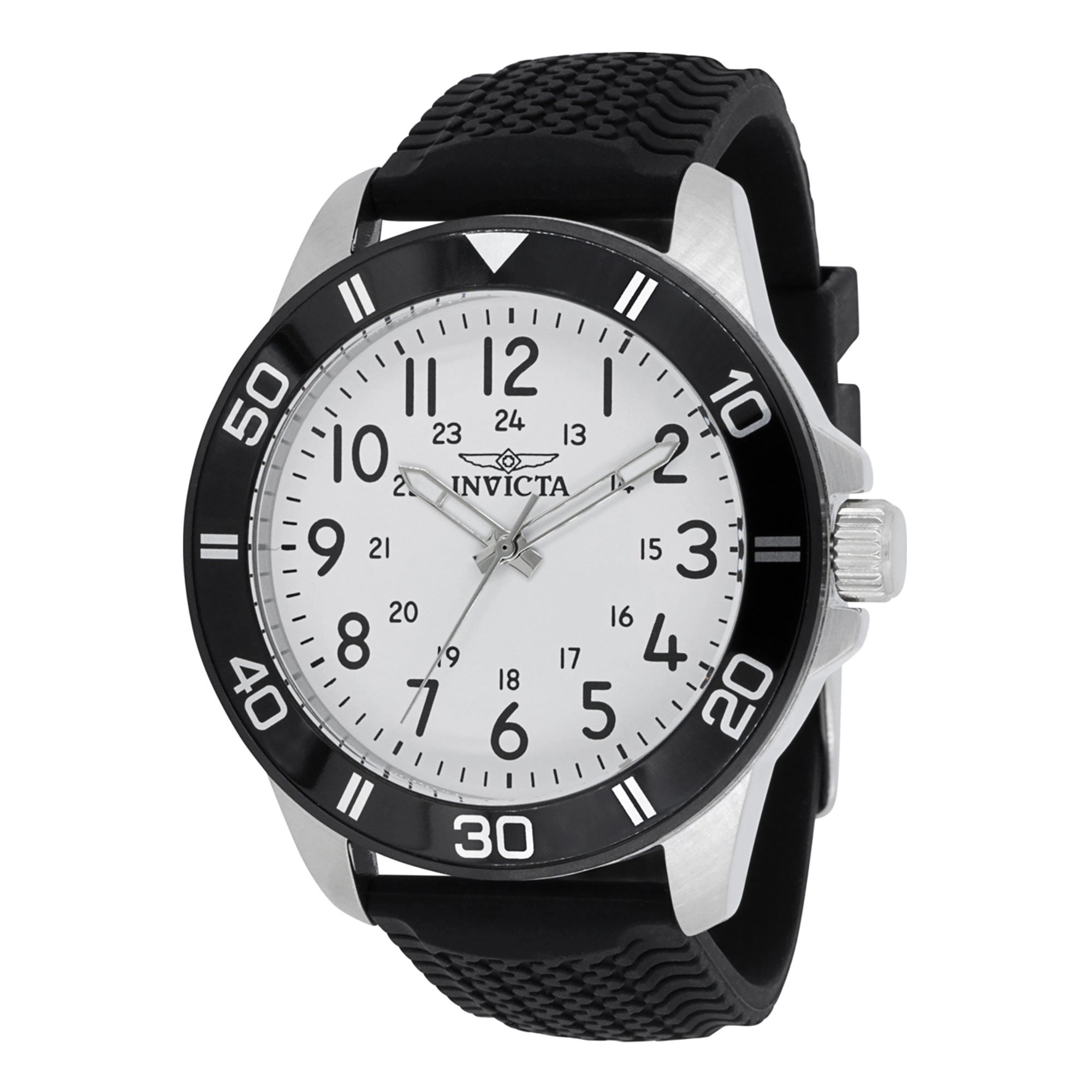 Designed for an active lifestyle, the Invicta Pro Diver features a water resistance of 100 meters (WR 100mt), making it ideal for swimming, snorkeling, and everyday splashes. The comfortable black silicon band, with a 22mm width and secure tang buckle closure, offers both flexibility and a perfect fit for a casual style.