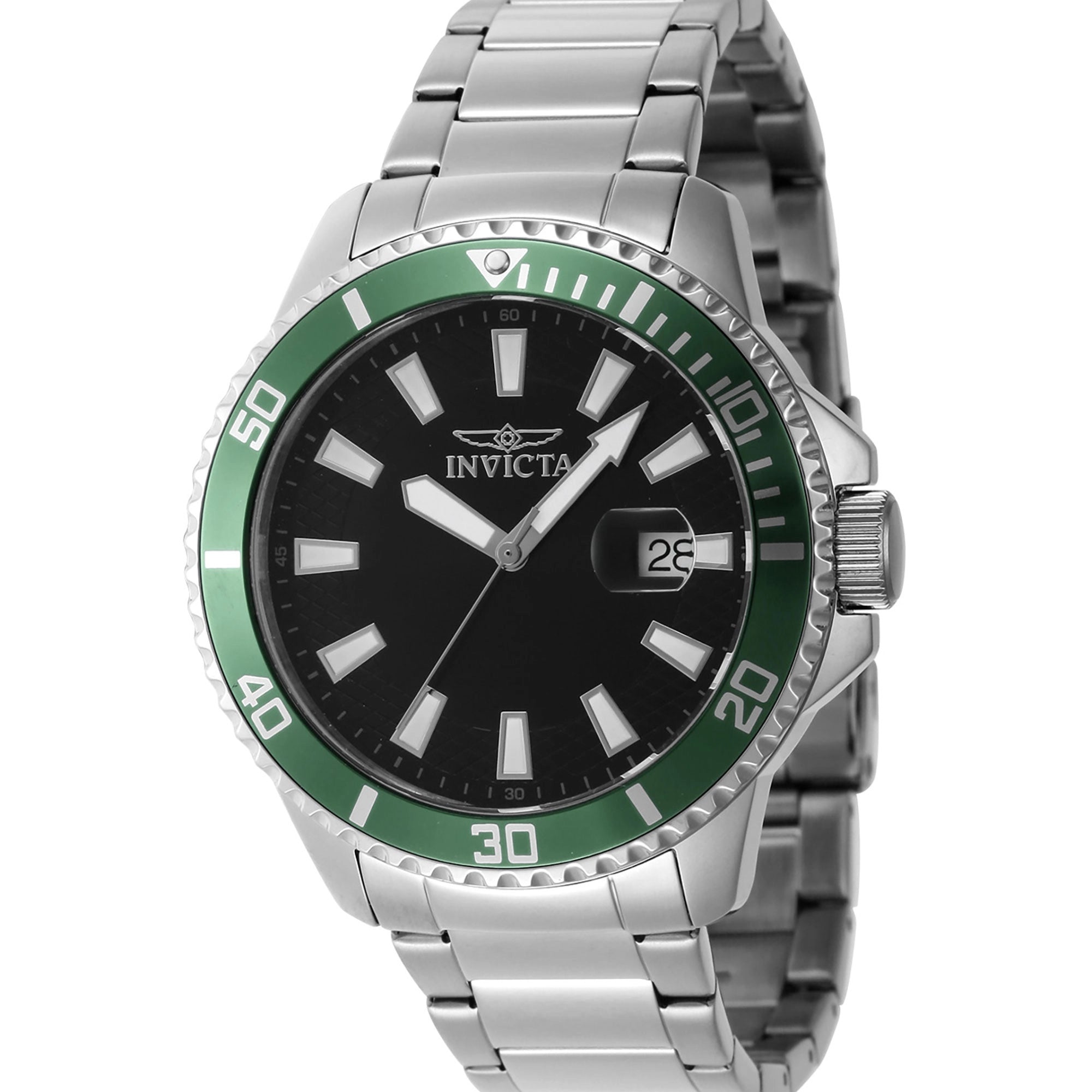 Invicta Pro Diver Men's Quartz Watch - 45mm Stainless Steel, Green Bezel, Black Dial