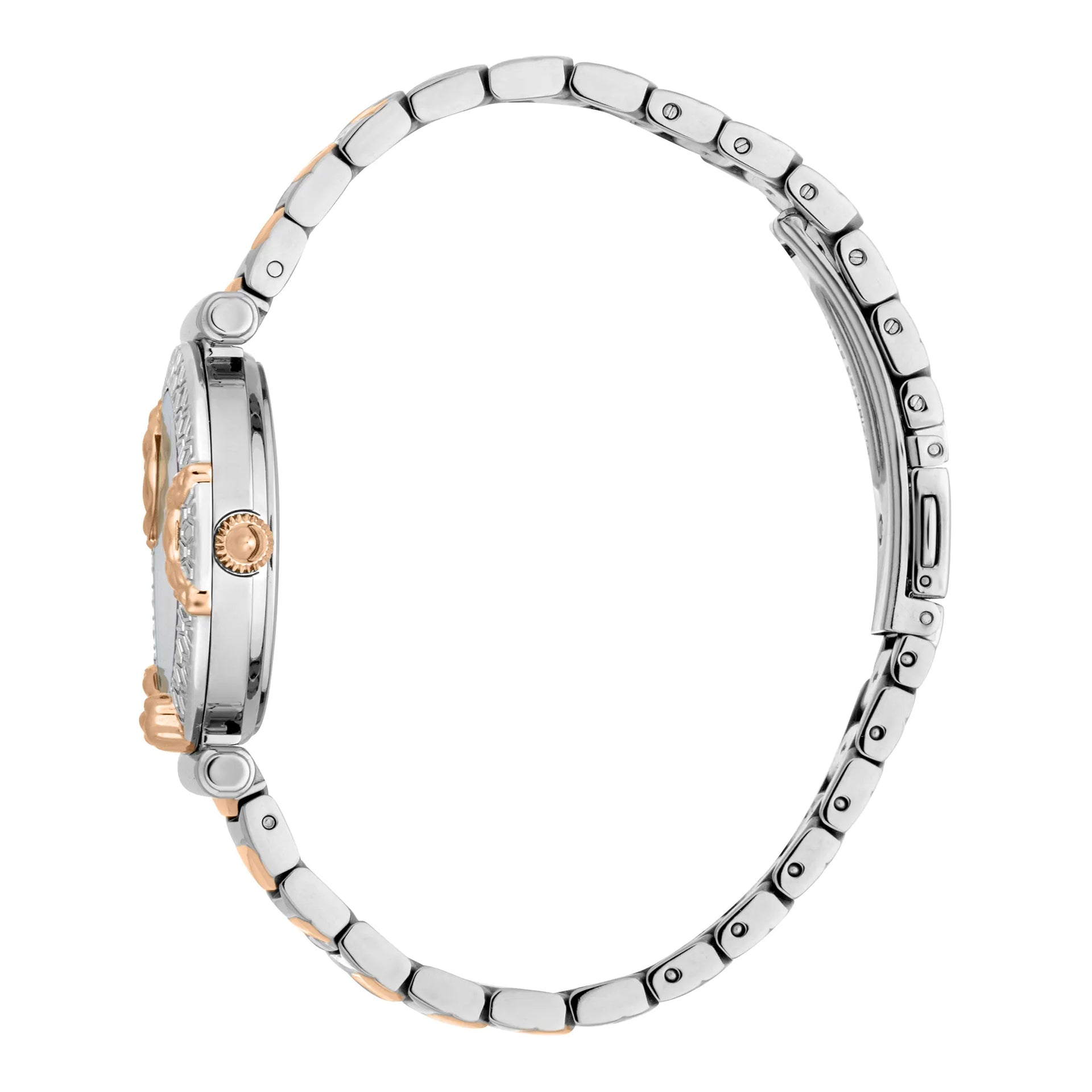 En el mundo de la moda, donde la elegancia se encuentra con la audacia, surge un reloj que captura la esencia de la sofisticación moderna. Elaborado en el corazón del estilo, este Just Cavalli Watch de la colección Animalier es un testimonio del talento de la marca para el diseño audaz y la artesanía exquisita. La caja redonda, bañada en un lujoso tono oro rosa, emite un brillo cálido que complementa el diseño refinado del reloj. Con un diámetro de caja de 32 mm, se posa con gracia en la muñeca, convirtiéndolo en el accesorio perfecto para la mujer vanguardista. La correa de acero inoxidable, también en oro rosa, añade un toque de opulencia, mientras que el cierre desplegable de mariposa con botón pulsador asegura un ajuste seguro y cómodo. La esfera gris plateada, que recuerda a cielos iluminados por la luna, es un lienzo de elegancia, con una clásica visualización de 3 agujas impulsada por un movimiento de cuarzo preciso. Resistente al agua hasta 50 metros, este reloj es tan práctico como elegante, listo para acompañarte en las aventuras de la vida. El cristal mineral añade una capa de durabilidad, protegiendo la esfera mientras mantiene su claridad. Este Just Cavalli Watch no es solo un reloj, es una declaración de estilo, una mezcla de moda y función que habla al espíritu audaz de quienes lo llevan.