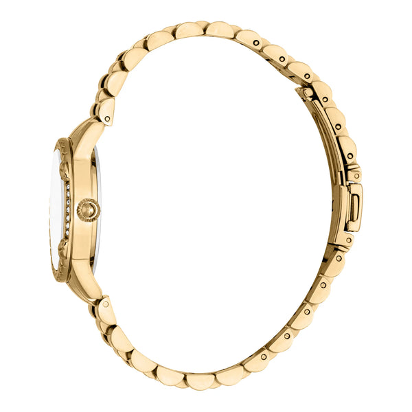 En el ámbito de la moda, donde la elegancia se encuentra con la audacia, surge un reloj que encarna el espíritu de la mujer moderna: el Just Cavalli Watch de la ilustre colección Animalier. Fabricado en el corazón de la precisión suiza, este reloj es un testimonio de lo audaz y lo bello. Su caja redonda, bañada en la opulencia del oro amarillo, captura la esencia del lujo, mientras que la esfera blanca antigua susurra historias de sofisticación atemporal. El diámetro de 30 mm es un equilibrio perfecto de gracia y presencia, convirtiéndolo en un compañero ideal para cualquier ocasión. Con una resistencia al agua de hasta 50 metros, promete resistencia contra los elementos, asegurando que el estilo nunca se vea comprometido. El cristal mineral protege la esfera, ofreciendo claridad y protección, mientras que la corona de tirar y empujar añade un toque de practicidad. La correa de acero inoxidable, también en oro amarillo, se envuelve alrededor de la muñeca con un sentido de elegancia refinada, asegurada por un cierre desplegable con botón pulsador para facilidad y comodidad. Impulsado por un movimiento de cuarzo preciso, la visualización de tres manecillas danza con gracia sobre la esfera, marcando cada momento con precisión. Este Just Cavalli Watch no es solo un accesorio, es una declaración de carácter y audacia, una celebración del espíritu intrépido que se atreve a destacar en un mundo de conformidad.