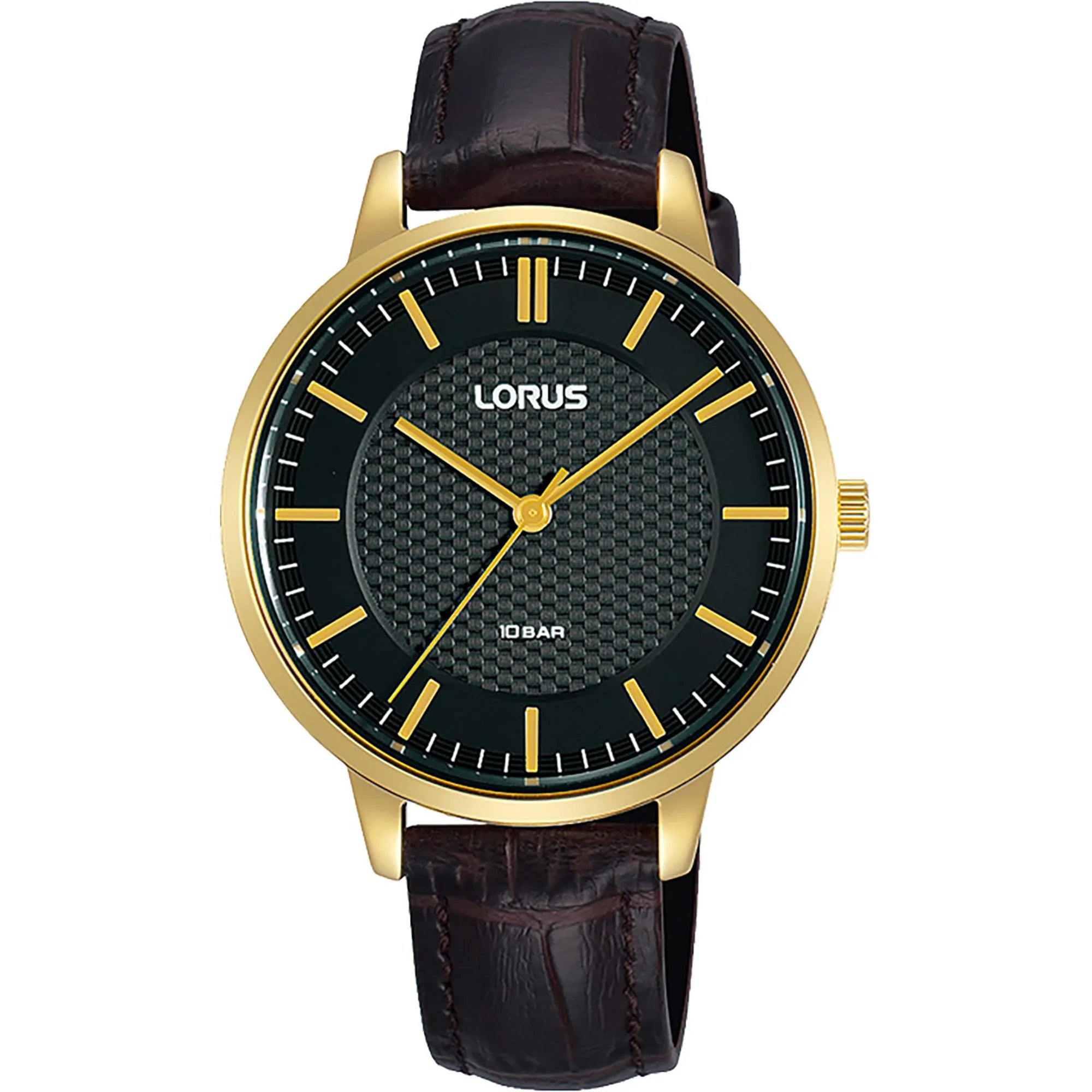 En el mundo de la elegancia atemporal, donde la sofisticación se encuentra con la funcionalidad, surge una obra maestra que captura la esencia de la feminidad clásica. Elaborado con precisión y gracia, este reloj Lorus Lady es un testimonio de diseño refinado y gusto exquisito. Su caja redonda, bañada en el cálido resplandor del oro amarillo, irradia un aura de lujo y encanto, complementando perfectamente la delicada muñeca que adorna. Con un diámetro de caja de 34 mm, logra el equilibrio perfecto entre sutileza y presencia, convirtiéndolo en un compañero ideal para cualquier ocasión. La resistencia al agua del reloj de hasta 100 metros asegura que siga siendo un aliado firme, ya sea que estés navegando por las bulliciosas calles de la ciudad o disfrutando de un día sereno junto al agua. El cristal mineral protege la elegante esfera negra, donde el tiempo se marca con precisión gracias al fiable movimiento de cuarzo. La corona de tipo pull & push añade un toque de practicidad, permitiendo ajustes fáciles. Rodeando la muñeca con una correa de cuero marrón chocolate, esta pieza ofrece una mezcla armoniosa de comodidad y estilo. El cierre de hebilla de ardillón garantiza un ajuste seguro, mientras que la pantalla analógica proporciona un toque clásico que trasciende las tendencias pasajeras. Este reloj Lorus Lady no es solo un accesorio, es una declaración de elegancia duradera, un reflejo de la mujer que lo lleva con confianza y gracia.
