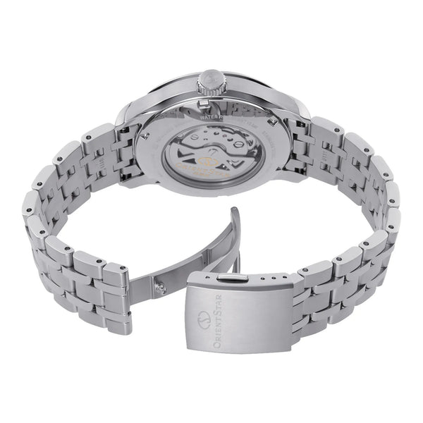 En el ámbito de los relojes, donde la elegancia se encuentra con la funcionalidad cotidiana, este reloj se erige como un testimonio de diseño refinado y estilo atemporal. Elaborado en una mezcla armoniosa de gris plateado, su caja redonda, que mide unos confiados 41 mm, emite una presencia sutil pero imponente en la muñeca. La esfera negra, un lienzo de sofisticación, está protegida por un cristal de zafiro, que garantiza claridad y resistencia. Con una resistencia al agua de hasta 100 metros, promete fiabilidad tanto en entornos urbanos como aventureros. La parte trasera transparente ofrece una vista del intrincado baile de su mecanismo interno, una característica que cautiva al ojo exigente. La correa de acero inoxidable, que refleja el tono gris plateado de la caja, se ajusta cómodamente alrededor de la muñeca, asegurada por un cierre desplegable con botón pulsador para facilidad y seguridad. Este reloj, con su corona de tirar y empujar, no es solo un accesorio sino un compañero para el hombre moderno, que combina un estilo casual con un aire de lujo discreto, convirtiéndolo en una pieza esencial para quienes aprecian el arte de la relojería.