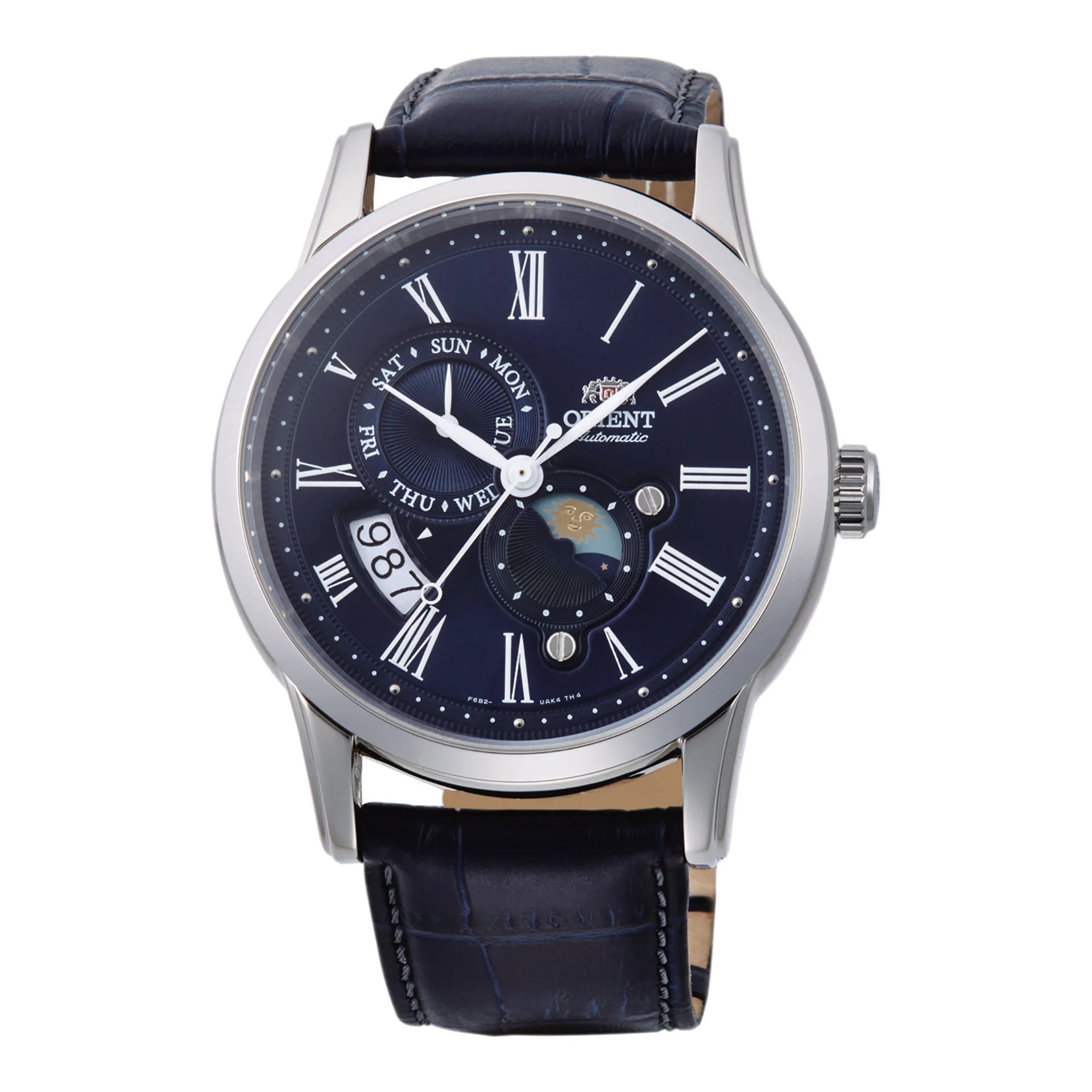En el ámbito de la relojería, donde el tiempo es tanto un maestro como una musa, surge una obra maestra que captura la esencia de la elegancia clásica y la precisión mecánica. Elaborado en el corazón de la innovación, el reloj ORIENT Classic AK00 Sun & Moon es un testimonio de sofisticación atemporal. Su caja redonda, bañada en un tono gris plateado, emana una presencia sutil pero imponente, complementando perfectamente la correa de cuero azul profundo que envuelve la muñeca con un sentido de lujo refinado. La esfera de cristal de zafiro revela una cautivadora carátula azul, donde se despliega la danza del sol y la luna, ofreciendo una visión poética del paso del tiempo. Este reloj no es simplemente un accesorio, es una declaración de estilo y sustancia, diseñado para el caballero exigente que aprecia el arte de la relojería. Con un diámetro de caja de 42 mm, logra un equilibrio armonioso entre audacia y elegancia, mientras que la parte trasera transparente ofrece una ventana al intrincado movimiento mecánico impulsado por el calibre F6B24. Las 22 joyas en su interior aseguran un funcionamiento suave y preciso, con una precisión diaria de +25/-15, convirtiéndolo en un compañero confiable para cualquier ocasión. Resistente al agua hasta 50 metros, es tan versátil como hermoso, listo para acompañarte desde reuniones en la sala de juntas hasta veladas nocturnas. El cierre desplegable con botón pulsador garantiza un ajuste seguro, mientras que la corona de tirar y empujar permite ajustes sin esfuerzo. Con capacidades tanto de cuerda manual como automática, este reloj es una celebración de la artesanía y la innovación, una verdadera encarnación del legado ORIENT.