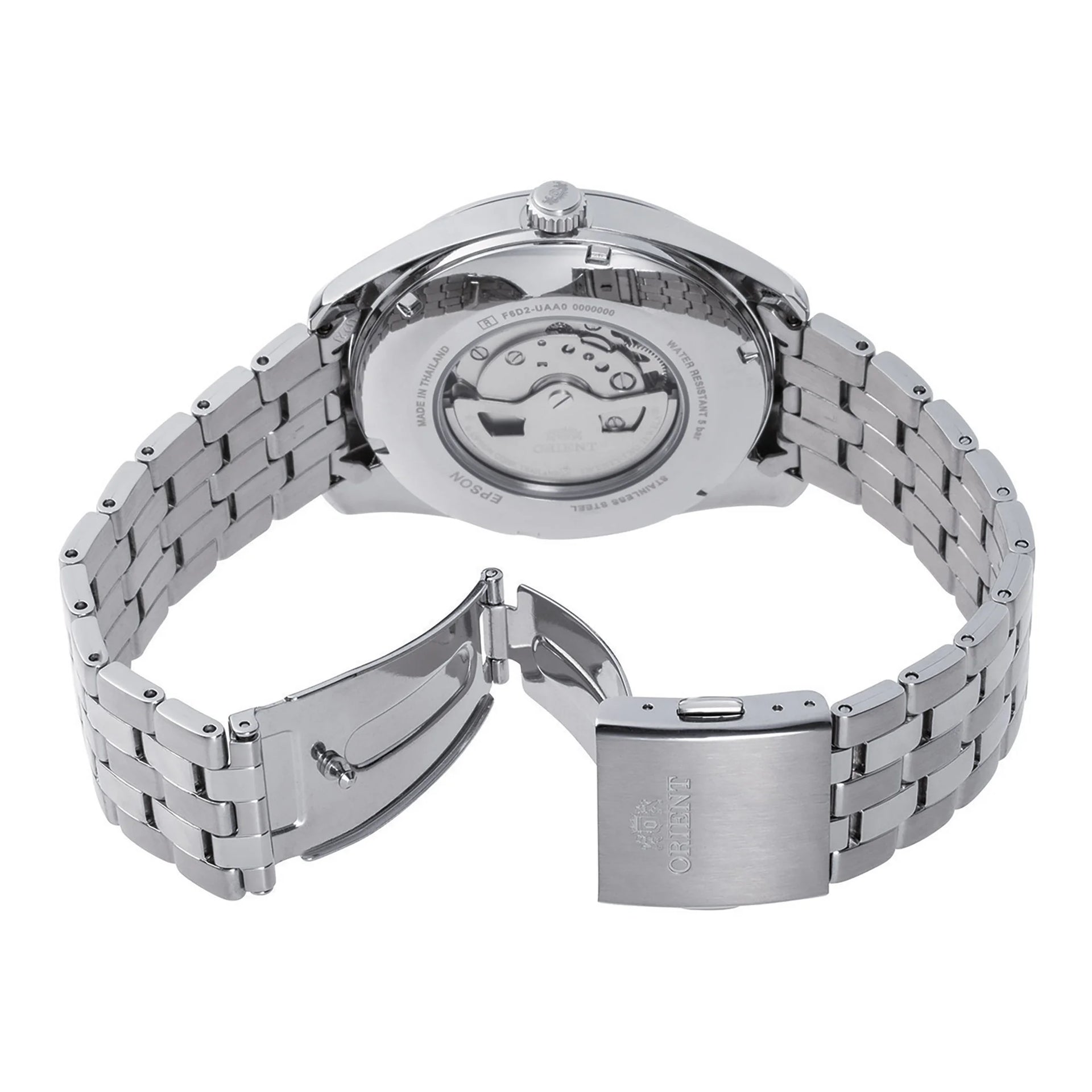 En el ámbito de los relojes, donde la elegancia se encuentra con la funcionalidad, surge una creación que captura la esencia de la sofisticación moderna: el ORIENT BA00 Multi Year Calendar. Elaborado en el corazón de la innovación horológica, este reloj es un testimonio del arte de la relojería, combinando sin esfuerzo estilo y precisión. Su caja redonda, bañada en un elegante gris plateado, emana un diseño refinado que habla al caballero contemporáneo. Con un diámetro imponente de 43 mm, hace una declaración sin pronunciar una palabra. El cristal mineral protege una esfera verde vibrante, un guiño a un toque de color que desafía la convención e invita a la admiración. Bajo su superficie se encuentra la maravilla mecánica del calibre F6D22, con 22 rubíes que aseguran una sinfonía de movimiento, ya sea manual o automático. La parte trasera transparente ofrece una vista del intrincado baile de engranajes y resortes, un secreto compartido solo con el portador. La correa de acero inoxidable, que combina con la caja en gris plateado, envuelve la muñeca con una sensación de continuidad, asegurada por un cierre desplegable con botón pulsador para facilidad y seguridad. Resistente al agua hasta 50 metros, este reloj es tan versátil como elegante, listo para acompañar a su dueño desde salidas casuales hasta eventos más formales. El Multi Year Calendar, que muestra día, fecha, mes y año, es un testimonio de su funcionalidad, asegurando que el tiempo siempre esté a tu favor. El ORIENT BA00 Multi Year Calendar no es solo un reloj, es un compañero para el hombre moderno, una mezcla de tradición e innovación, diseñado para resistir la prueba del tiempo.