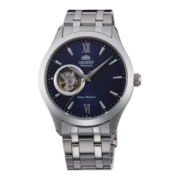 En el ámbito de los relojes, donde la elegancia se encuentra con la funcionalidad, surge una creación que captura la esencia de la sofisticación moderna. Elaborado en el corazón de la excelencia horológica, el reloj ORIENT AG03 Open Heart de la colección ORIENT Contemporary es un testimonio de diseño refinado y artesanía meticulosa. Su caja redonda, bañada en un elegante tono gris plateado, encierra una esfera azul hipnotizante que evoca las serenas profundidades del océano. Este reloj no es solo un cronómetro, es una declaración de estilo para el caballero exigente que aprecia el arte de la elegancia casual. La parte trasera transparente ofrece una vista del intrincado baile de su movimiento mecánico, impulsado por el calibre F6T22 con 22 rubíes, asegurando precisión con una exactitud diaria de +25/-15. La correa de acero inoxidable, que combina con la caja en su atractivo gris plateado, se ajusta a la muñeca con un cierre desplegable plegable, ofreciendo seguridad y facilidad de uso. Con una resistencia al agua de hasta 50 metros, este reloj es tan versátil como hermoso, listo para acompañarte desde la sala de juntas hasta una escapada de fin de semana. La corona de tirar y empujar y el cristal mineral aumentan su durabilidad, mientras que las funciones de cuerda manual y automática hablan de su avanzada ingeniería. Este reloj ORIENT es más que un accesorio, es un compañero para el hombre moderno que valora tanto la tradición como la innovación, una mezcla perfecta de diseño atemporal y estilo contemporáneo.