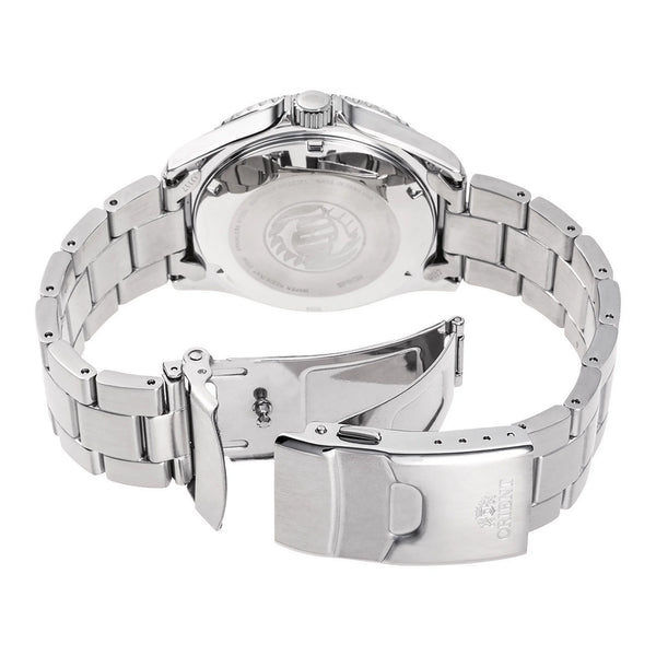 En el mundo de los relojes, donde la precisión se encuentra con la elegancia, el ORIENT AA08 Kamasu V2 Graduado se erige como un testimonio del arte de la relojería. Fabricado en el corazón de la experiencia horológica, este reloj ORIENT Sports es una mezcla armoniosa de funcionalidad y estilo, diseñado para el hombre moderno que valora tanto la aventura como la sofisticación. Su caja redonda, bañada en un elegante gris plateado, alberga una llamativa esfera azul que captura la esencia de las profundidades del océano, un guiño a su impresionante resistencia al agua de 200 metros Diver. El cristal de zafiro protege la esfera, asegurando claridad y durabilidad, mientras que la corona atornillada añade una capa extra de seguridad. La correa de acero inoxidable, también en gris plateado, se envuelve alrededor de la muñeca con un cierre desplegable plegable, completo con un botón pulsador y bloqueo de seguridad, ofreciendo tanto comodidad como tranquilidad. En el corazón de este reloj se encuentra el movimiento mecánico, impulsado por el calibre F6922 con 22 joyas, prometiendo una precisión diaria de +25/-15. El reloj es tanto de cuerda manual como automático, atendiendo a las preferencias de su portador. La función de calendario de día y fecha añade practicidad a su diseño refinado, convirtiéndolo en un compañero perfecto para cualquier ocasión. Con su visualización de tres agujas, este reloj no es solo una herramienta para dar la hora, sino una declaración de estilo y precisión, encarnando el espíritu de aquellos que se atreven a explorar las profundidades tanto del mar como de su propio potencial.