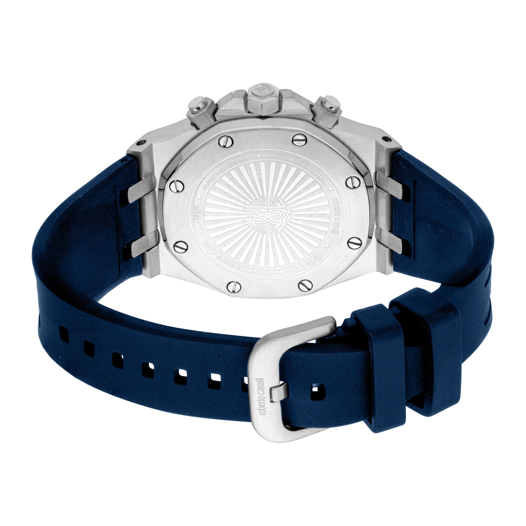 Presented in an elegant Roberto Cavalli original Box, the RC5G161P0025 is more than an accessory, it's a statement of contemporary fashion and Italian-inspired craftsmanship. Perfect for gifting or as a personal indulgence, this chronograph watch embodies the spirit of Roberto Cavalli. Elevate your wristwear collection with this iconic fashion watch. Shop the Roberto Cavalli men's watch today on Watchello.com and experience the fusion of design and precision.
