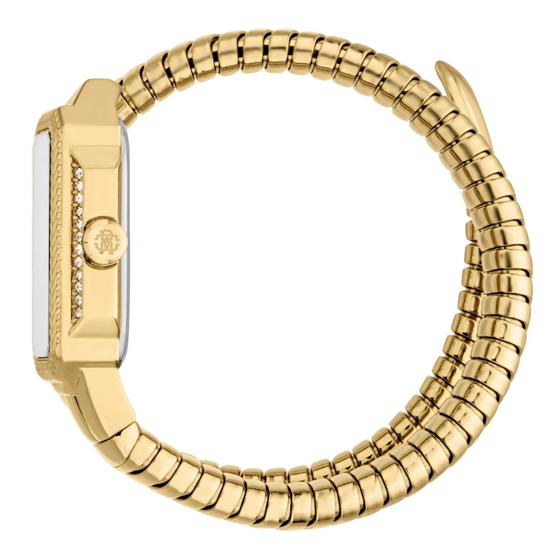 En el mundo de la moda, donde la elegancia se encuentra con la audacia, el reloj Roberto Cavalli Lady se erige como un testimonio de diseño refinado y atractivo atemporal. Elaborado en el corazón de la tradición relojera suiza, esta exquisita pieza captura la esencia de la sofisticación con su caja rectangular, bañada en el opulento brillo del oro amarillo. La esfera de cristal mineral revela una carátula gris plateada, un lienzo sutil pero llamativo que refleja la luz con cada movimiento. La visualización de dos manecillas, impulsada por un movimiento de cuarzo preciso con un calibre GL22, asegura que el tiempo se mantenga con la máxima exactitud. La corona de tirar y empujar añade un toque de practicidad, fusionando sin esfuerzo funcionalidad con estilo. Rodeando la muñeca con una correa de acero inoxidable, también en oro amarillo, este reloj irradia una mezcla armoniosa de fuerza y elegancia. Resistente al agua, está diseñado para acompañar a la mujer moderna en cada faceta de su día, desde las bulliciosas calles de la ciudad hasta las serenas veladas nocturnas. El reloj Roberto Cavalli Lady es más que un accesorio, es una declaración de pensamiento vanguardista en moda, una pieza que encarna el espíritu audaz de quien lo lleva. Con su diseño lujoso y artesanía impecable, este reloj es una celebración de la feminidad y el estilo, un verdadero reflejo del legado Roberto Cavalli.
