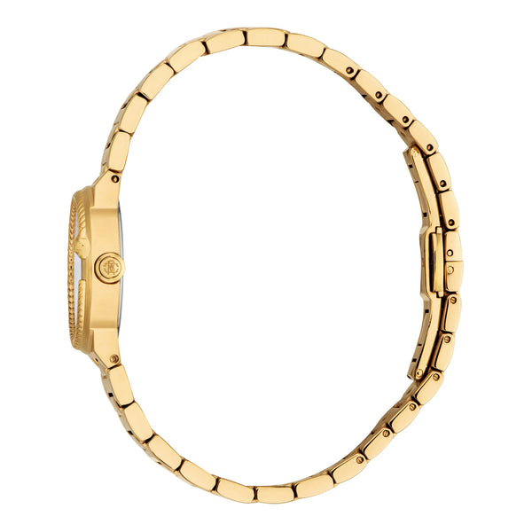 En el mundo de la moda, donde la elegancia se encuentra con la innovación, surge un reloj que encarna la esencia de la sofisticación y el estilo. Fabricado en el corazón de la relojería suiza, este reloj Roberto Cavalli Lady es un testimonio del compromiso de la marca con el lujo y la precisión. Su caja redonda, bañada en el opulento tono de oro amarillo, captura la luz con cada movimiento, creando una danza hipnotizante de reflejos. Con un diámetro de caja de 26 mm, se posa con gracia en la muñeca, un compañero perfecto para la mujer moderna que valora tanto la forma como la función. El cristal mineral protege una esfera gris plateada, donde tres agujas se deslizan sin esfuerzo, impulsadas por el fiable movimiento de cuarzo GL32. Este reloj no es solo un guardatiempo, es una declaración de diseño refinado, con una resistencia al agua de hasta 50 metros, asegurando que soporte los rigores de la vida diaria. La correa de acero inoxidable, también en oro amarillo, se envuelve alrededor de la muñeca con un cierre desplegable tipo mariposa, ofreciendo seguridad y facilidad de uso. El mecanismo de botón pulsador añade un toque de modernidad a su atractivo clásico. Este reloj Roberto Cavalli Lady es más que un accesorio, es la encarnación de la elegancia atemporal, una pieza que habla al corazón de la moda con cada tic de sus agujas.